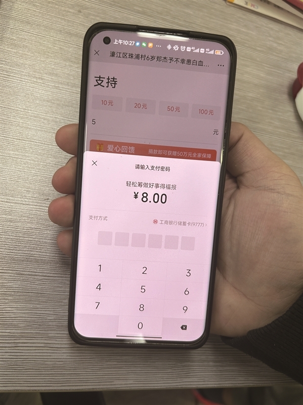 最近,还有人质疑轻松筹平台的一项收费不合理。事情是这样的,浙江温州的林先生,在微信朋友圈看到一条轻松筹平台的生病求助募捐信息,出于同情捐助了5元。他付款时点的比较快,点完才发现自己实际付了8元,多付了3元。