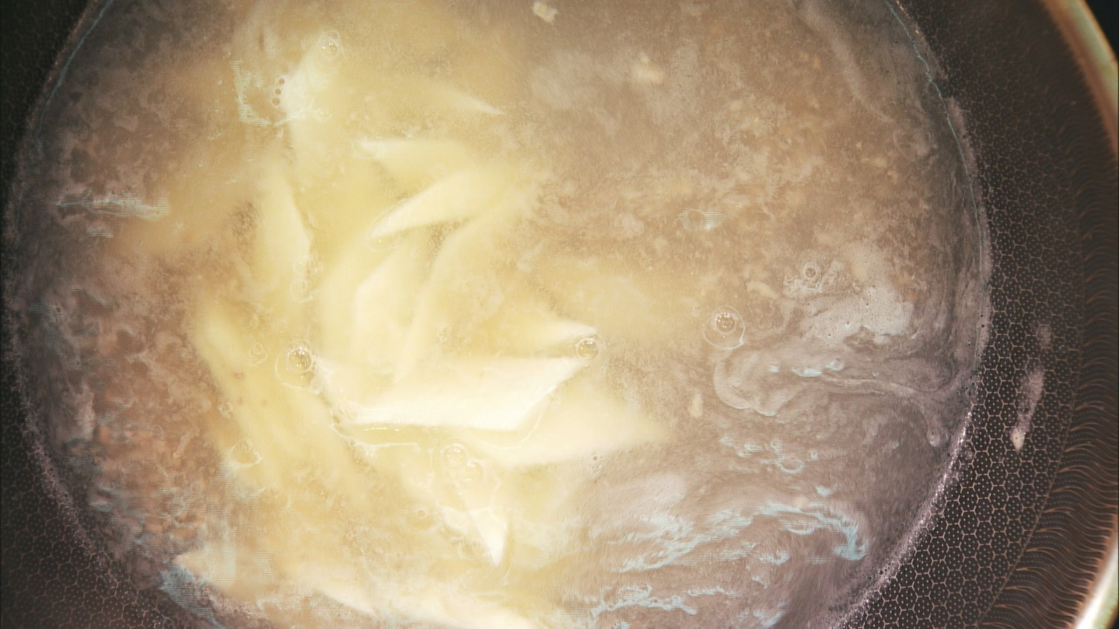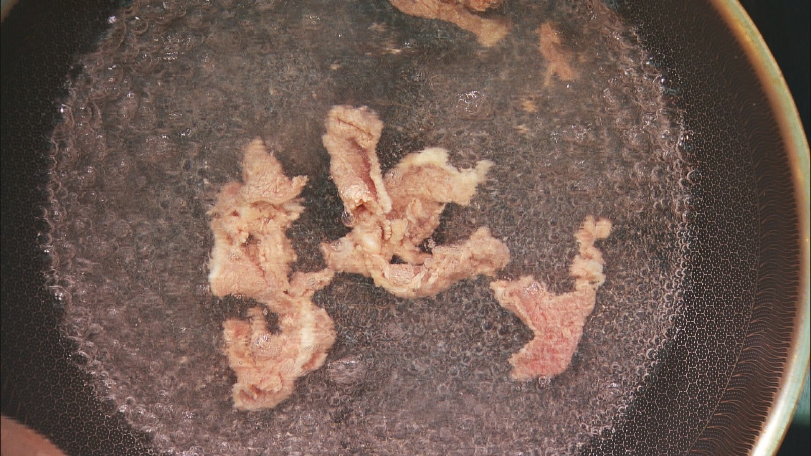 步骤2: 下锅焯羊肉片,成熟后捞出,再焯熟山药片;