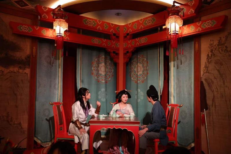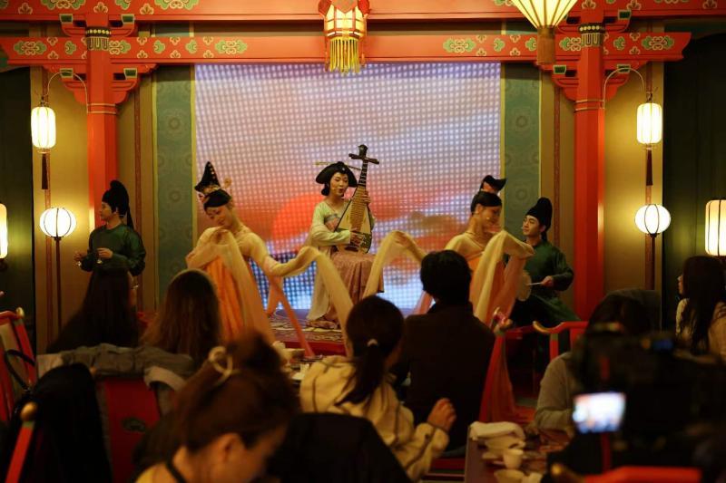 春风拂面,北京环球度假区内花团锦簇,玉兰花、迎春花在春风的吹拂下,秀出了动人的舞姿。当天,北京环球度假区首个电影沉浸式主题互动餐厅——《长安三万里》唐歌宴-互动主题餐厅揭开了神秘的面纱。餐厅位于好莱坞俱乐部二层,穿过各式花灯和古风装饰打造的门廊区,掀开门帘的同时游人仿佛瞬间穿越到了盛唐。眼前,古色古香的店面装饰与身着唐代服饰热情招呼客人的“店小二”,让人一秒入戏,对接下来的体验充满期待……《长安三万里》唐歌宴-互动主题餐厅是北京环球度假区首度携手国产动画电影打造的具有盛唐国风美学的电影IP线下沉浸式空间。这里以盛唐诗韵与国风美学为主题特色,融合风味佳肴、精美餐具器物、主题装饰与音律等全感官盛景,体验的过程中还有李白、高适等角色“亲临现场”,通过一系列现场演出与互动,让游客沉浸式感受属于盛唐的快意情怀。