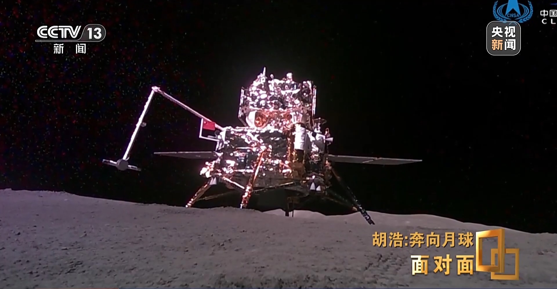 嫦娥六号任务总设计师 胡浩:就为这个动作,这需要精度很高,毫米级,地面操作月球实现毫米级的精度,这个难度确实是很大的。而且还取决于我们落在月球上探测器的姿态,它是歪了还是正的,这是不一样的。