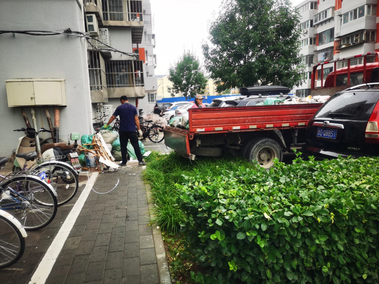 顺义区旺泉街道前进花园社区居民表示,家里是刚刚装修完,产生的垃圾不多,不够装满一车的,雇一回清运车就得花费一千元,成本太高了,社区不仅帮助他联系了价格适合的清运商,还向其他几家堆放建筑垃圾的居民提议“拼车”清运,这种方式,每家只需花费两三百元,清运价格大幅度降低。