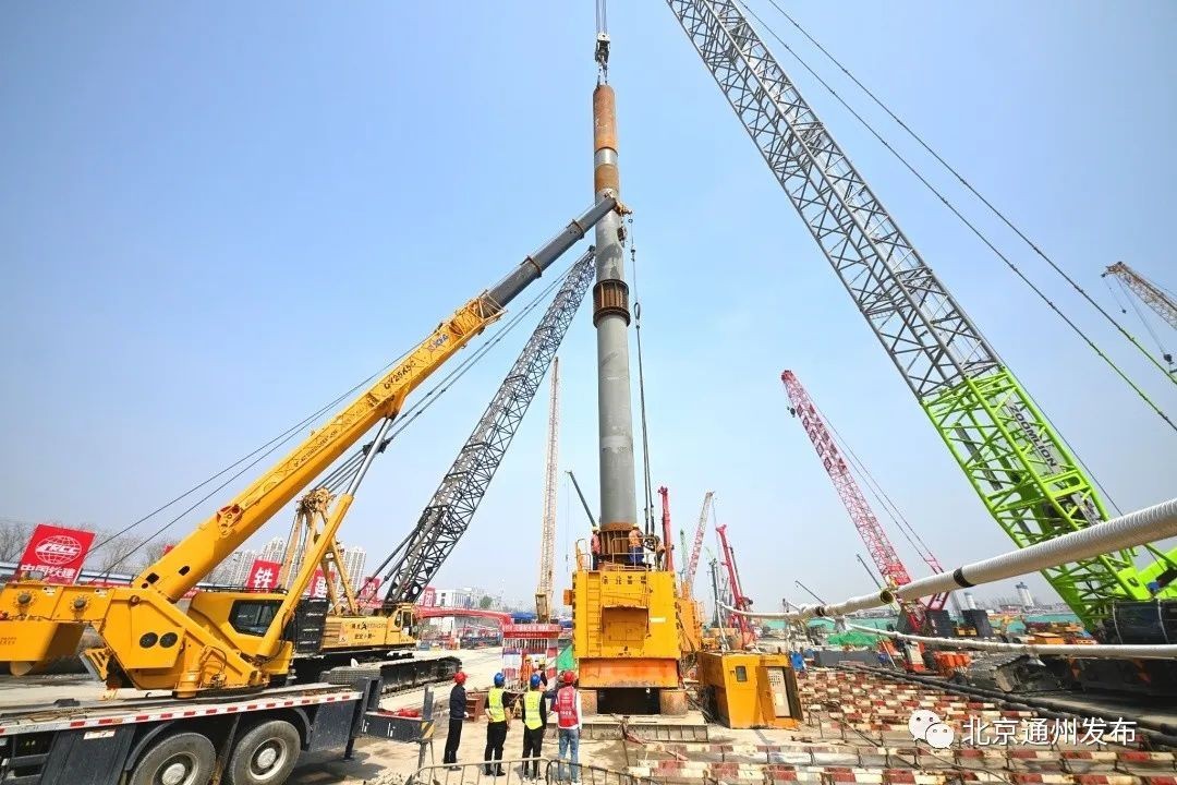 这标志着中铁建设集团北京城市副中心站综合交通枢纽工程01标段,全面完成钢管柱施工。