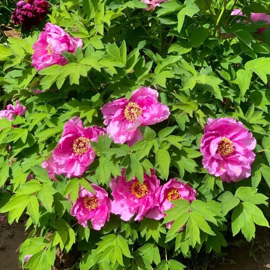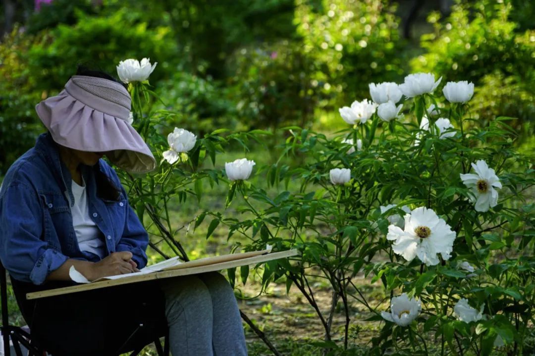 细观花型更是千姿百态,单瓣如蝶翼轻展,荷花型似盏盏宫灯,皇冠型饱满如绣球,台阁型“花中藏花”形成立体花塔,尽显牡丹的多样风姿。错落有致的花丛,不同形态的牡丹高低参差,编制出立体的美感韵律 。