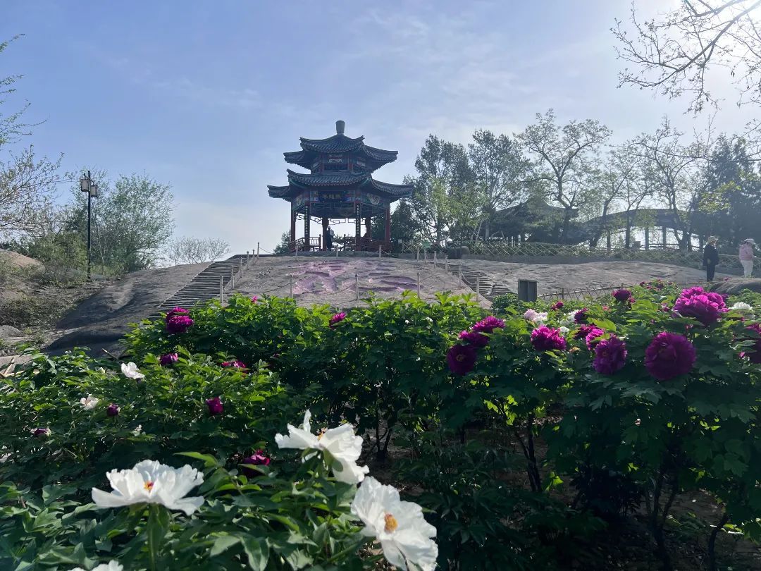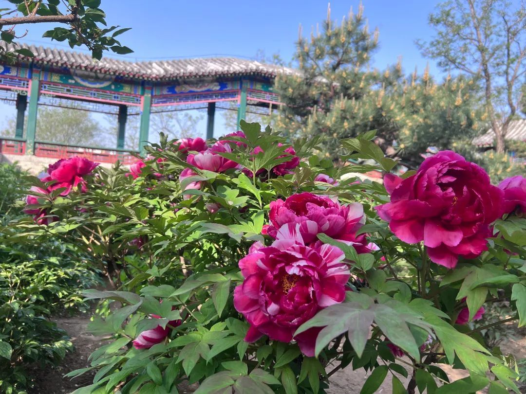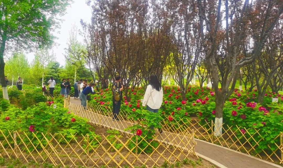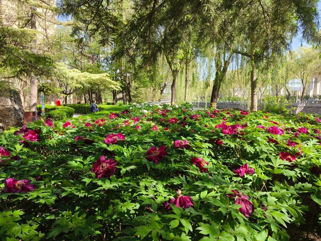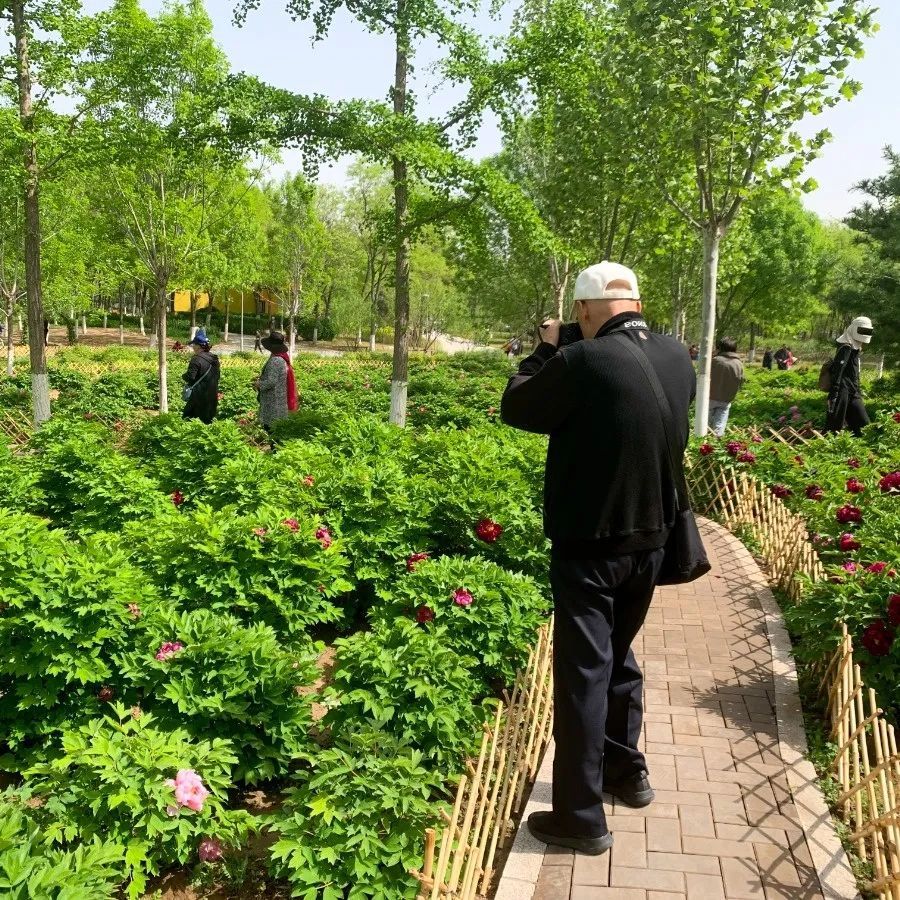 长阳公园牡丹园位于公园的西南侧,占地超4000平方米,栽植有紫二乔、珠光墨润、蓝芙蓉、彩绘等9个品种的牡丹,以及富贵红、菱花湛露、芳纪等5个品种的芍药,共计1.2万余株。当四月的风渐暖,郁金香的花海还未褪去华服,牡丹已悄然酝酿着一场更为盛大的舞宴,仿佛一场精心编排的交接仪式。