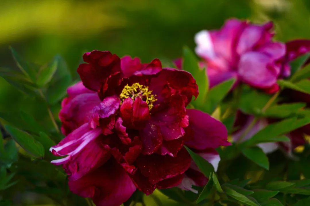 一时一景:清晨,带露水的牡丹,怼脸拍摄花瓣纹理,直接换手机壁纸;傍晚,逆光下的花瓣如镀上金边,惊艳朋友圈。