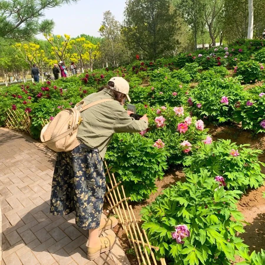 花间小径蜿蜒,游人三三两两驻足,或俯身轻嗅,或举镜拍摄,却都不约而同地放轻了脚步,生怕惊扰了这场盛大的花事。偶有花瓣随风飘落,悠悠荡荡,像是时光特意放慢了节奏,让人恍惚间梦回大唐——那时,长安城里的牡丹,也曾这样倾国倾城吧。