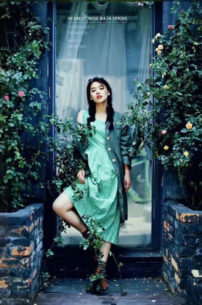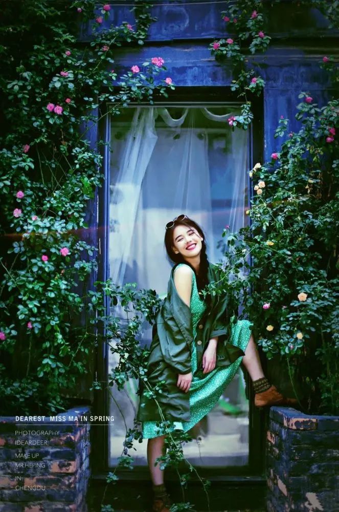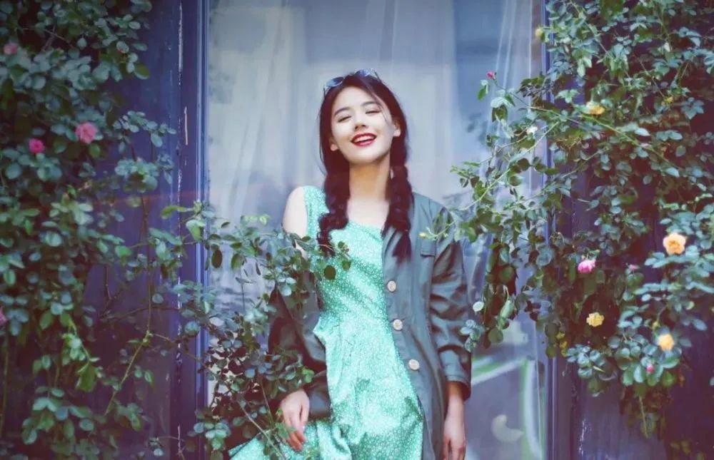 穿着绿色连衣裙,身上自带明晃晃的少女活力和朝气,又美又灵的样子,着实让人眼前一亮。