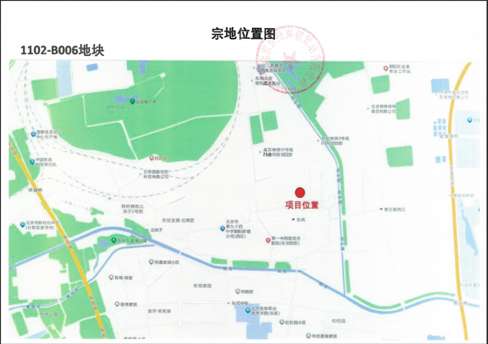 宗地位置:地块位于朝阳区东坝北西区域。