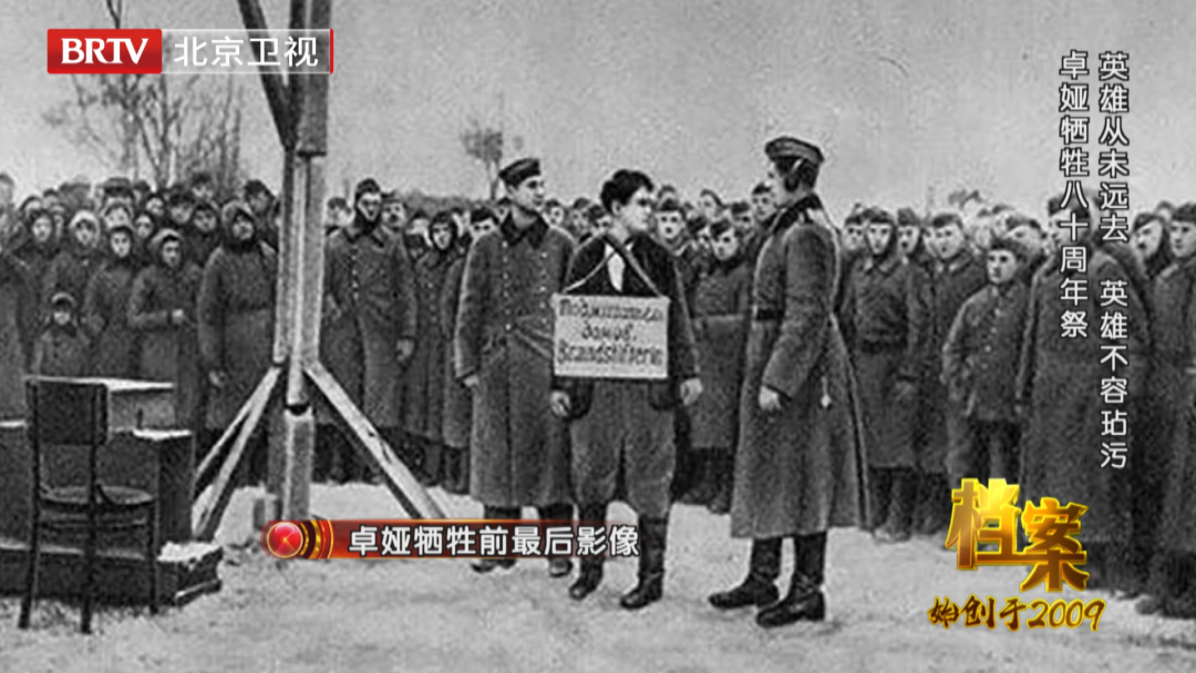 英雄从未远去,英雄不容玷污!时值苏联女英雄卓娅牺牲80周年之际,由北京银行独家冠名播出的《档案》将为您独家讲述卓娅牺牲背后的故事。今日21:50,敬请收看北京卫视。