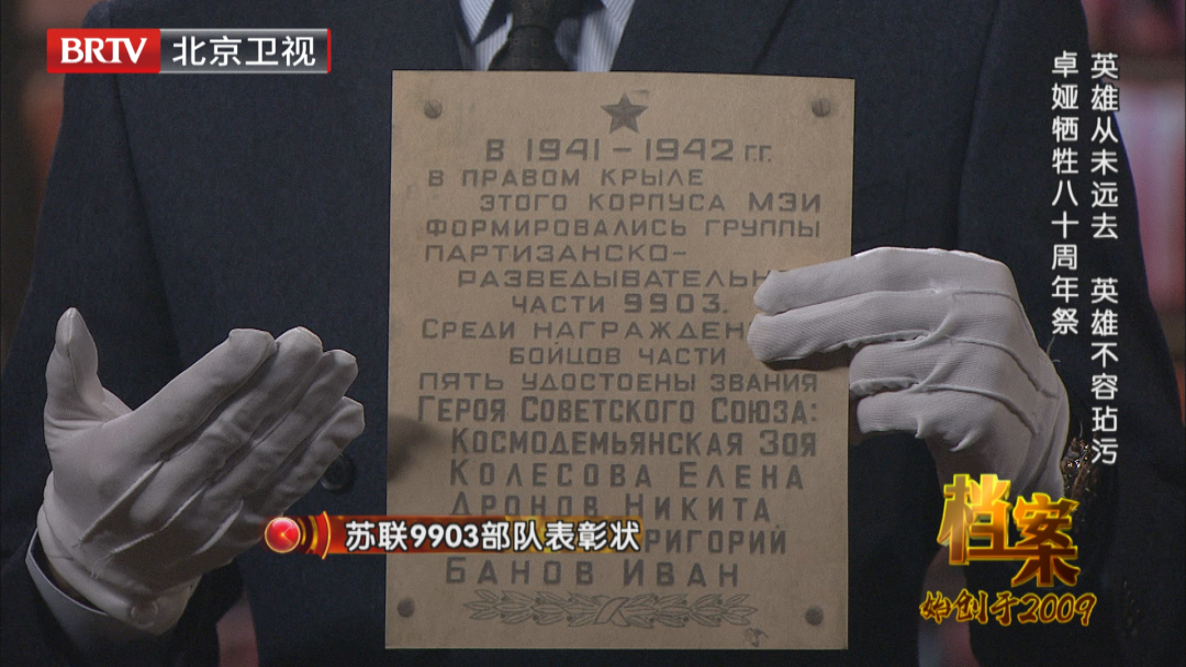 《英雄从未远去,英雄不容玷污——卓娅牺牲八十周年祭》今日21:50由北京银行独家冠名的《档案》为您独家讲述