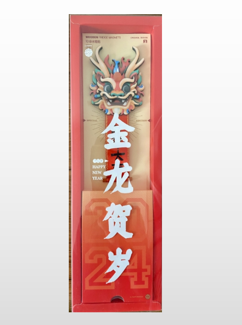 独特的木质冰箱贴结合生动的龙形设计和首钢园经典地表,寓意吉祥,造型可爱。