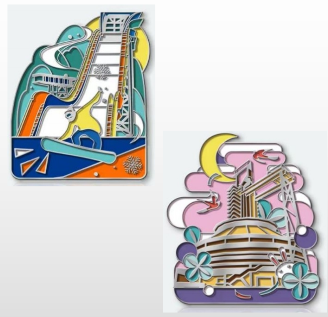 前者以首钢大跳台为主元素,融入滑板运动员形象,展现后冬奥时代首钢园风采。后者以首钢三高炉为主元素,展示钢铁遗产再利用。