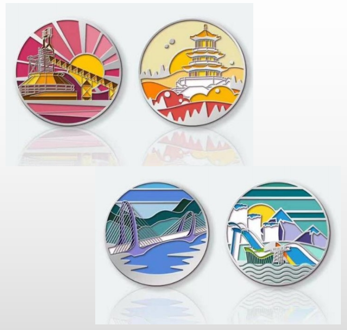 金、银、铜三种不同配色和风格与首钢工业风的碰撞展现出属于首钢的工业美学,通过金属质感的色彩和线条,突出了工业时代的力量与美感。