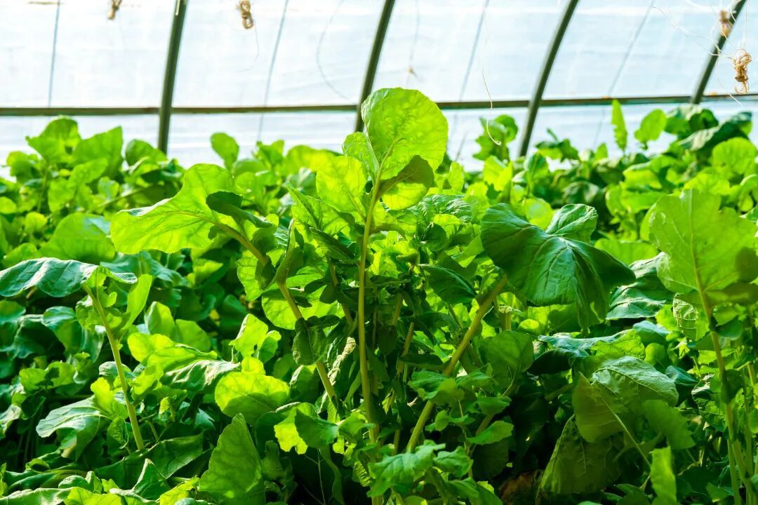 走进农场的种植基地,翠绿的板蓝根青菜整齐有序地排列着,叶片宽大厚实,宛如一把把绿色的小扇子;苔茎粗壮挺拔,展示着它的蓬勃生机,散发出阵阵自然清香。