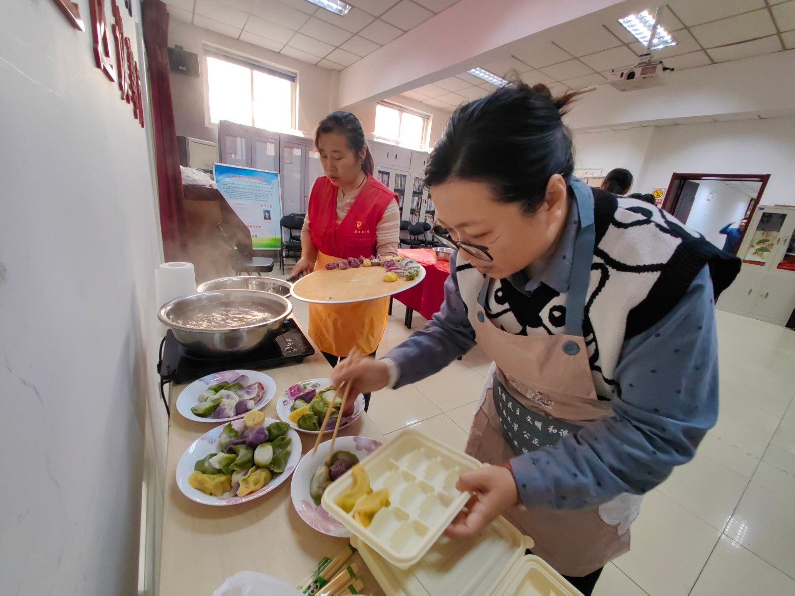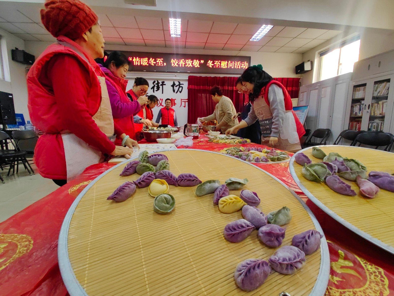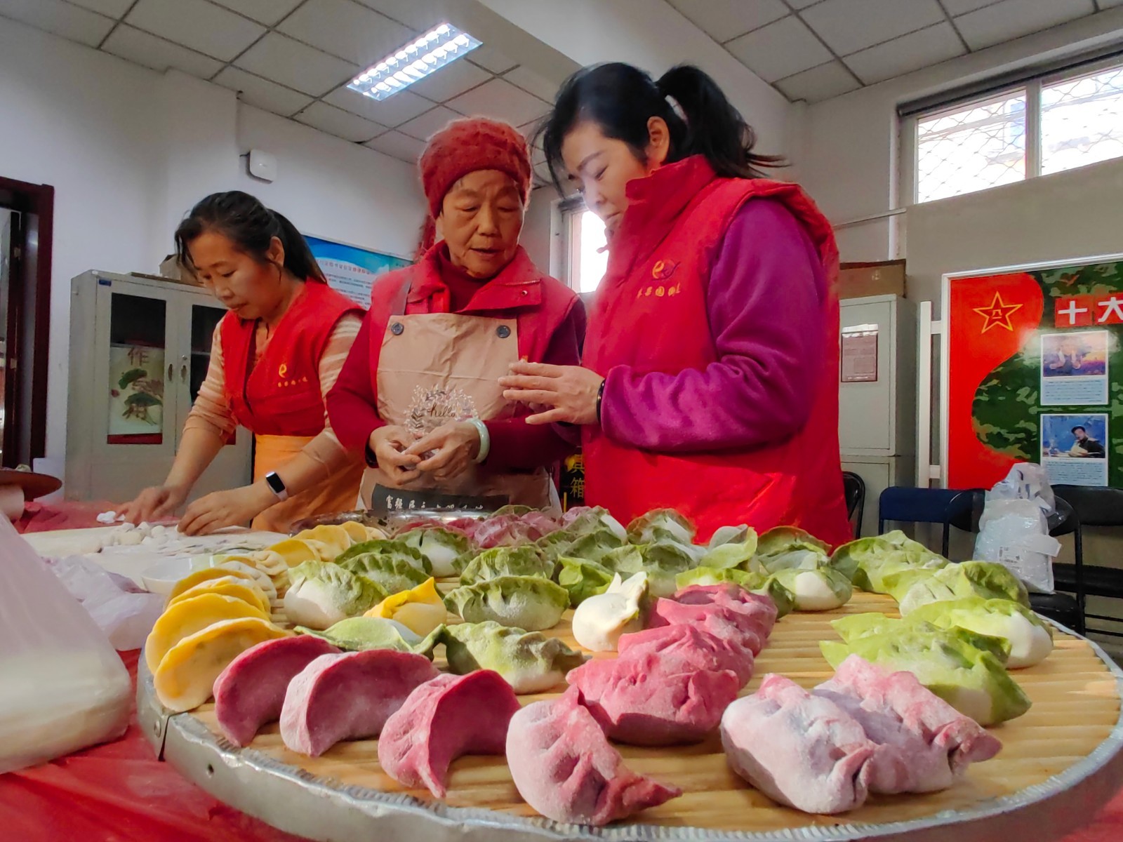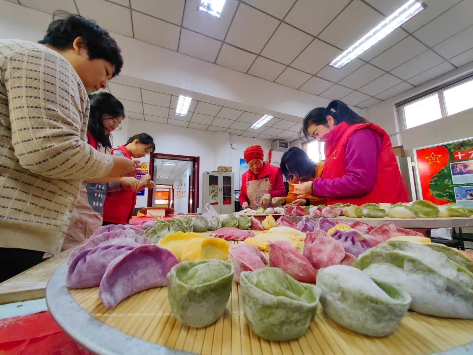 大家你一言我一语,欢声笑语间,一盘盘色彩鲜艳、造型别致的饺子摆满了桌面。参与活动的张阿姨感慨道:“垃圾桶站值守工作起早贪黑、又脏又累,冬至送碗热饺子,是咱们社区和居民的一点心意。”