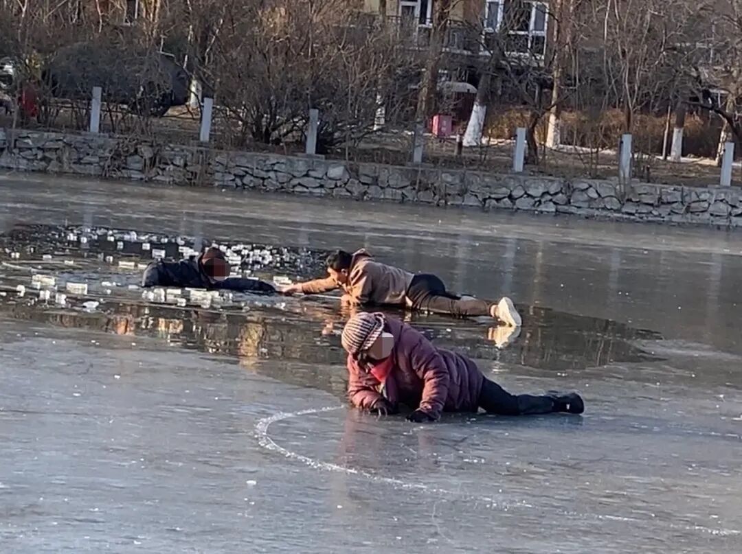 “有人掉下去了!”危急时刻,正在湖边带孩子游玩的王小磊、刘钟佳文夫妇听到呼救声。王小磊当即脱下羽绒服冲过去,随后匍匐在冰面上一点点靠近落水者。他先抓住大妈手中滑冰车的冰锥,奋力将大妈拉上了冰面。刘钟佳文则第一时间联系物业求助。