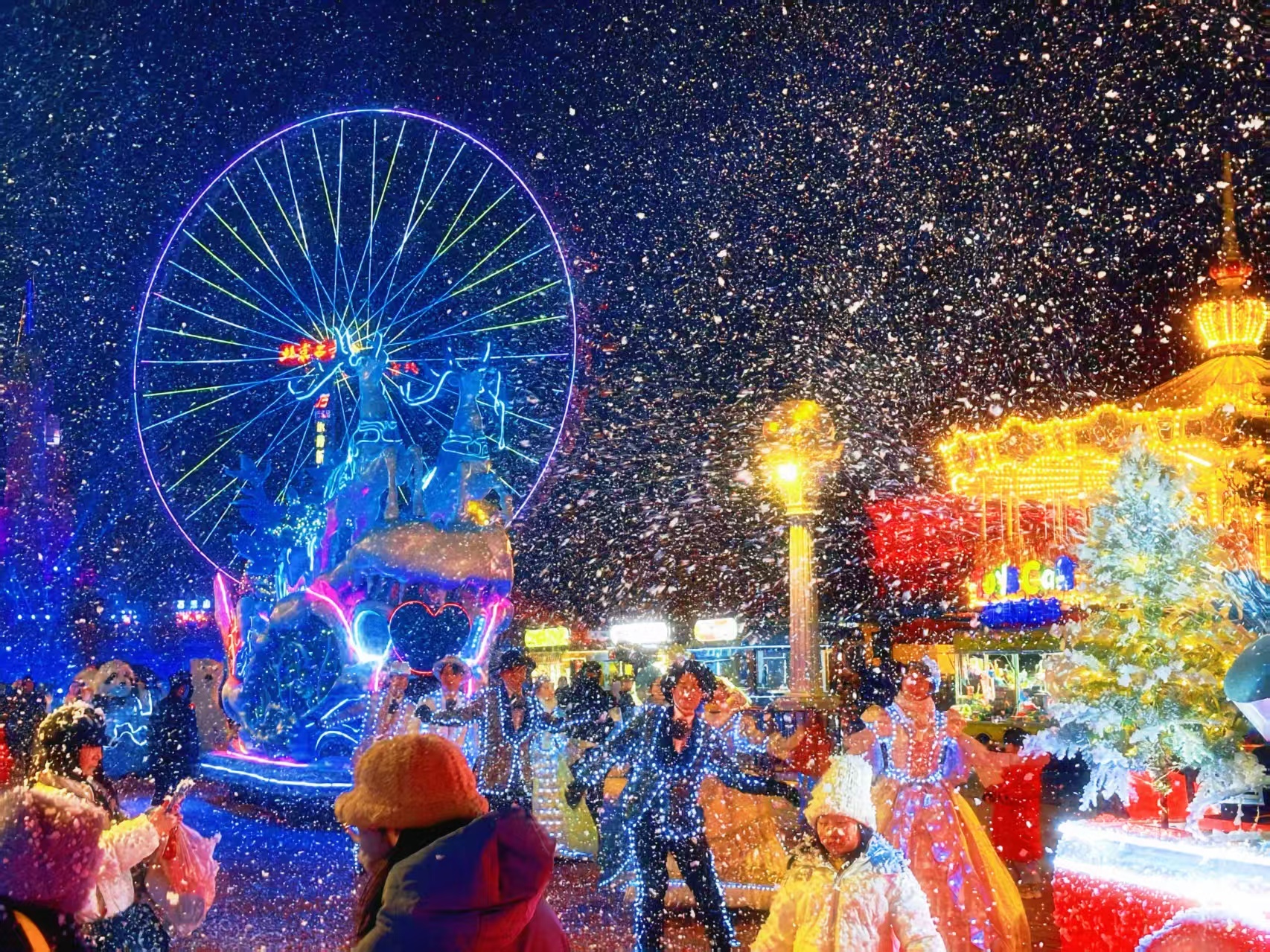 为丰富市民冬季文体生活,假日期间全市公园共推出传统民俗、冰雪嘉年华、跨年夜活动等85项生态文化活动,将冬日园林的静谧雅致与节庆的热闹氛围巧妙融合,为市民游客营造欢乐祥和的节庆氛围。陶然亭公园、城市绿心森林公园、龙潭公园等20余家公园纷纷开启冰雪狂欢模式,推出丰富多样、各具特色的冰雪活动,涵盖雪地娱乐、冰上运动、主题景观打卡等多种形式,打造一站式冬日畅玩体验,为市民带来“冬景花园”的别样乐趣。为提升市民游园体验,各公园在晨间观日、夜间游玩等客流高峰时段,通过提前开放游客中心、商业网点,持续供应热水热饮等暖心服务,并加强保洁、引导等现场服务力量,全力营造温暖、安心、舒适的游园环境。