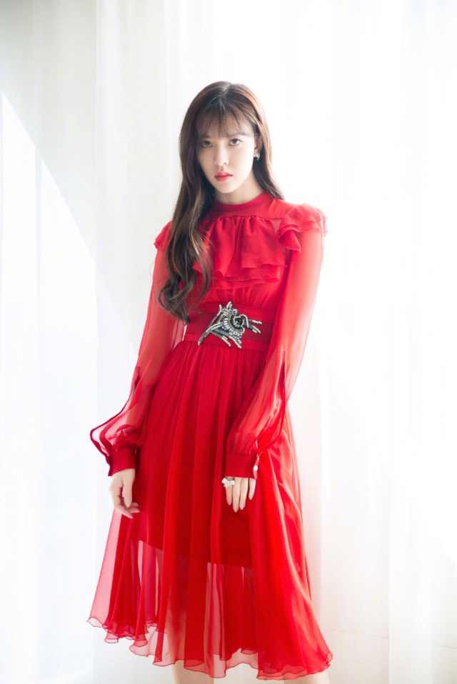 上面说了女主的造型都是偏校园气息的,在展现职场女性气场打造成熟与知性的造型上,宋妍霏在裙装上的选择则是运用印花丝绸或纯色A型裙来展现。