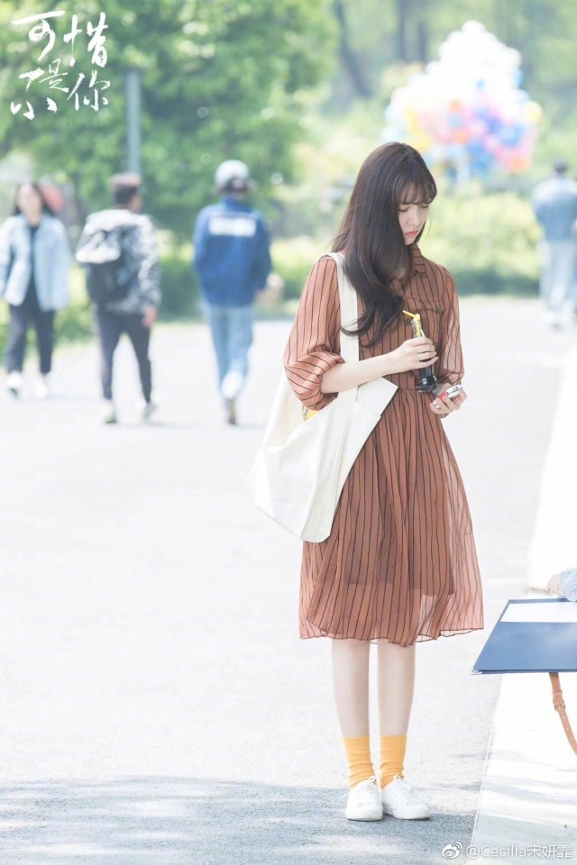 据说这部剧中女主的造型全都是扮演者宋妍霏自己亲自搭配的,外加这部剧属于是青春校园剧,所以里面的穿搭基本都很符合小女生的清新文艺范~