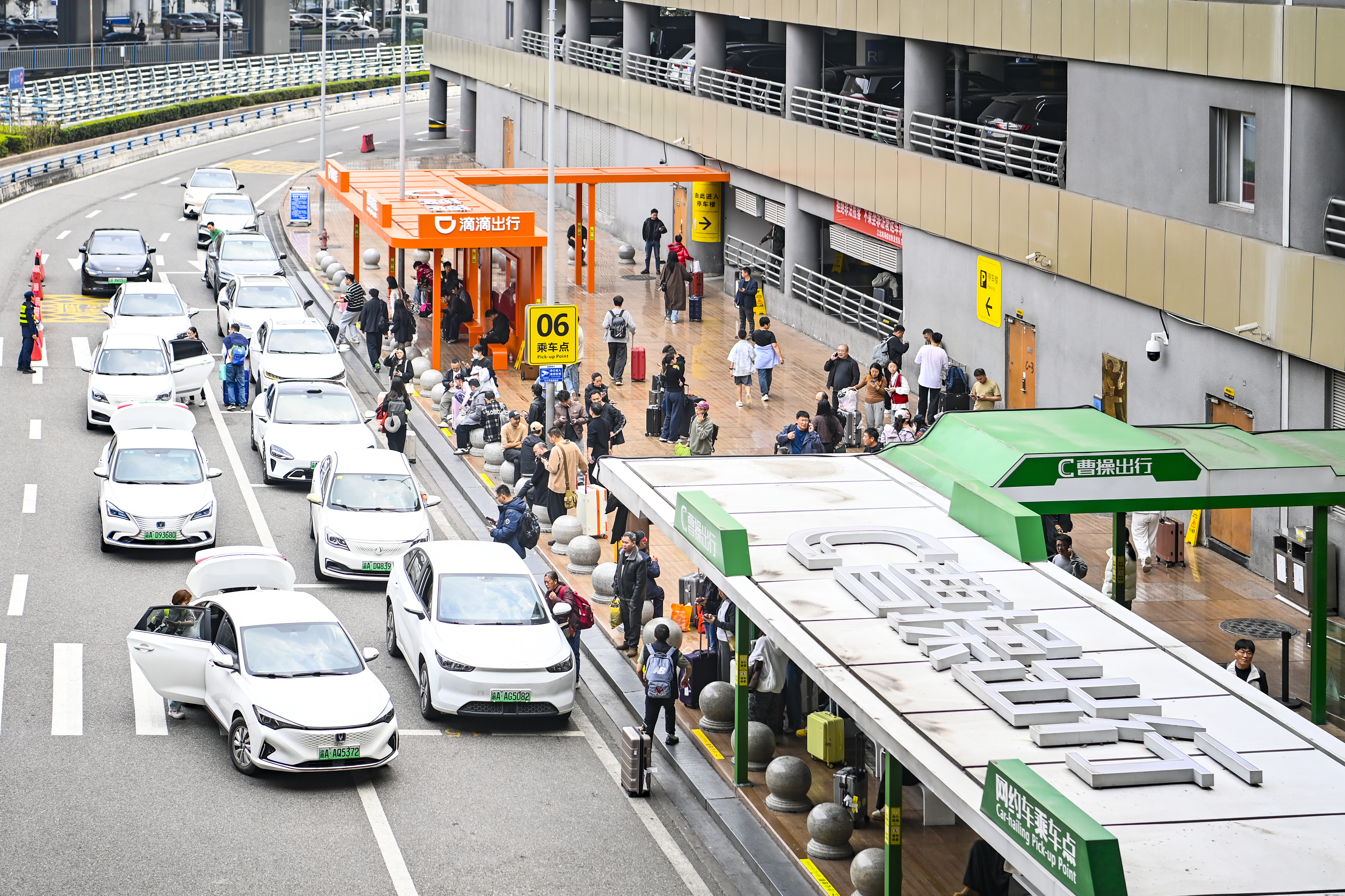 ▲2月23日,重庆江北国际机场,不少乘客在网约车上车点等候上车。记者 齐岚森 摄