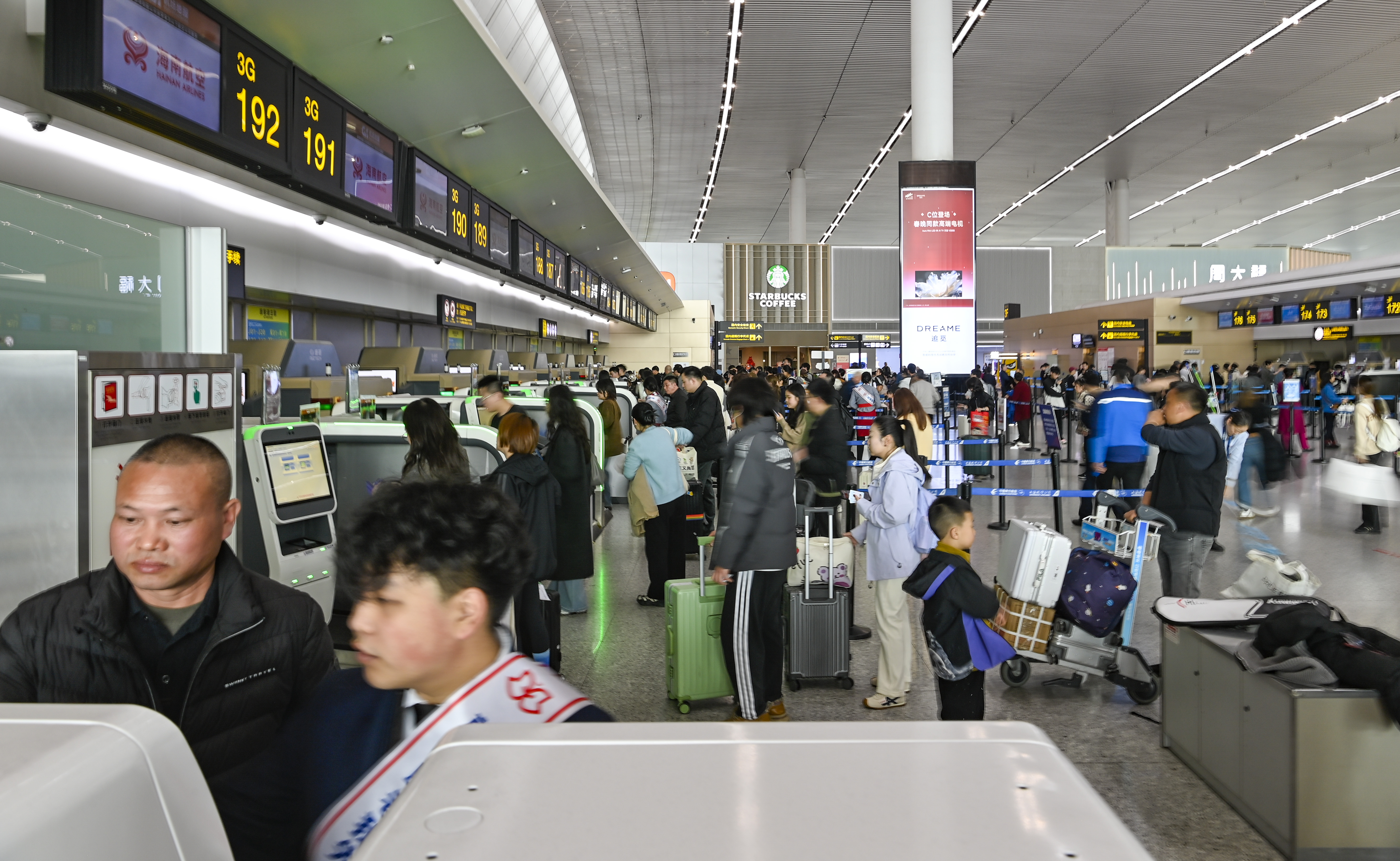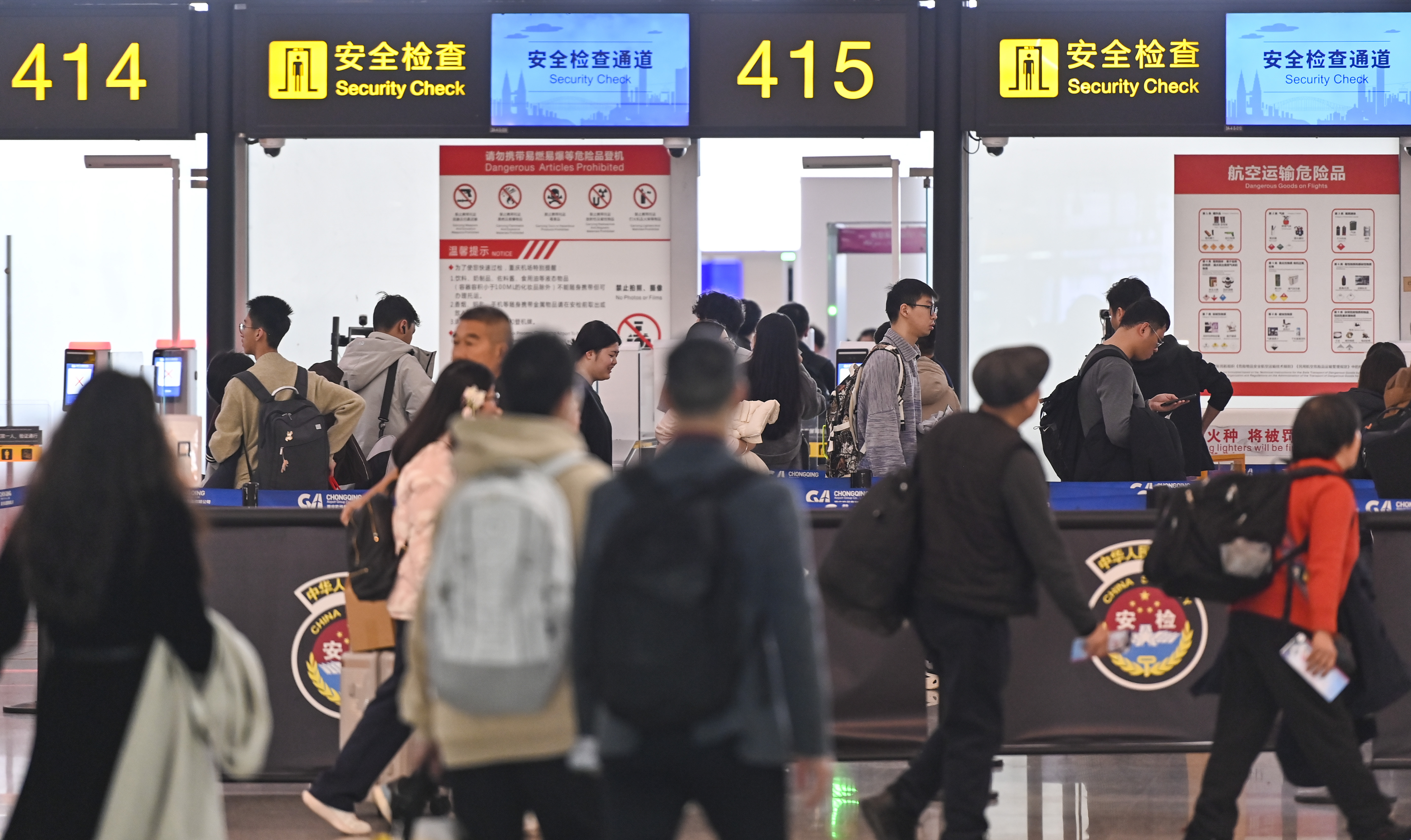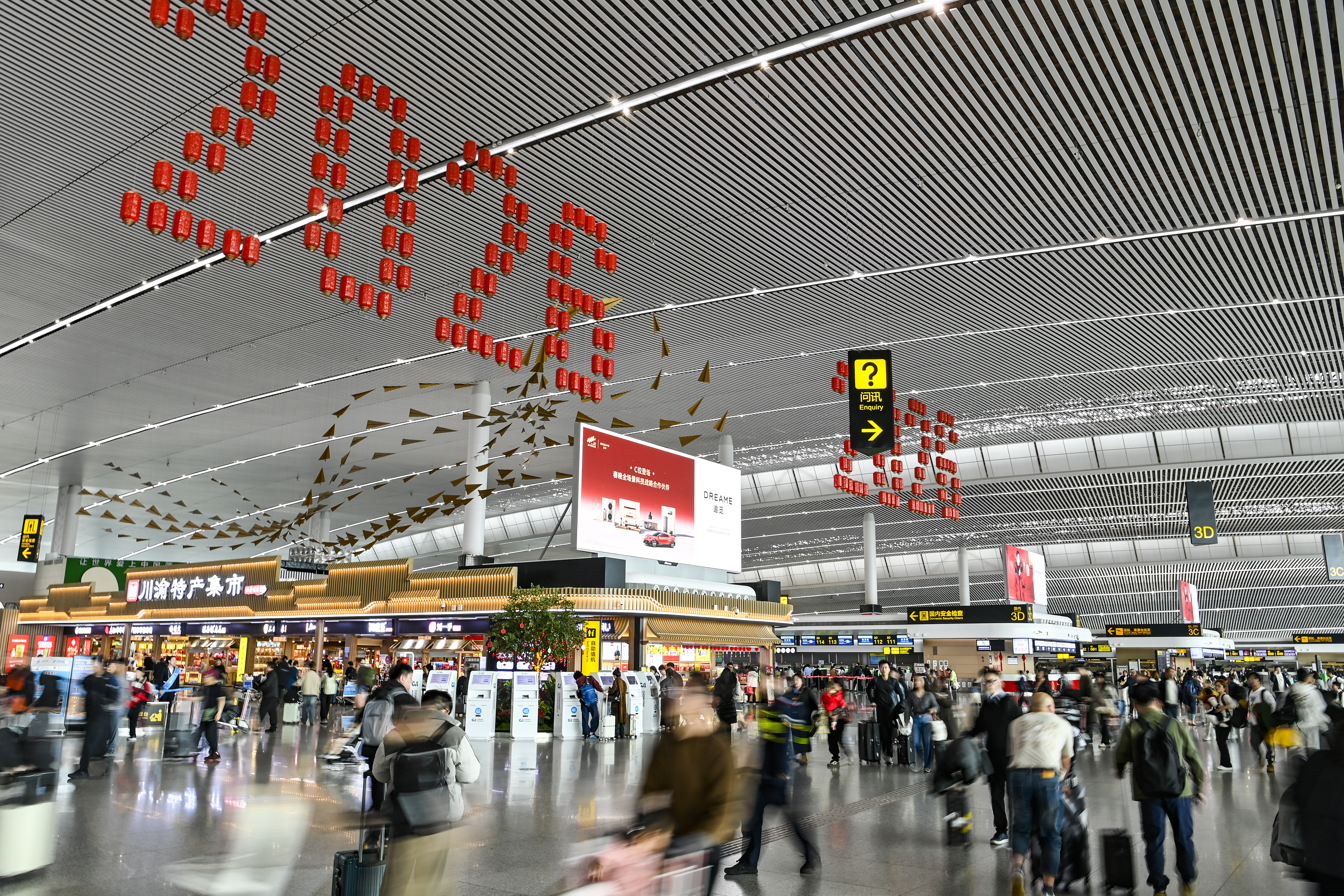 ▲2月23日,重庆江北国际机场,候机大厅内人潮涌动。记者 齐岚森 摄