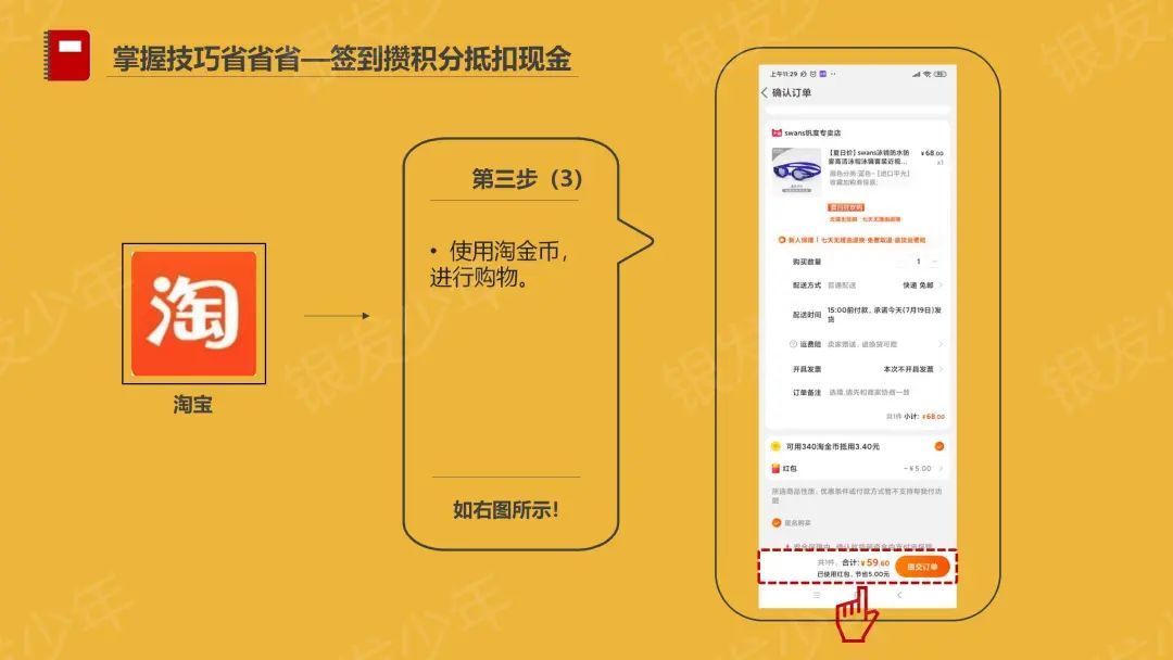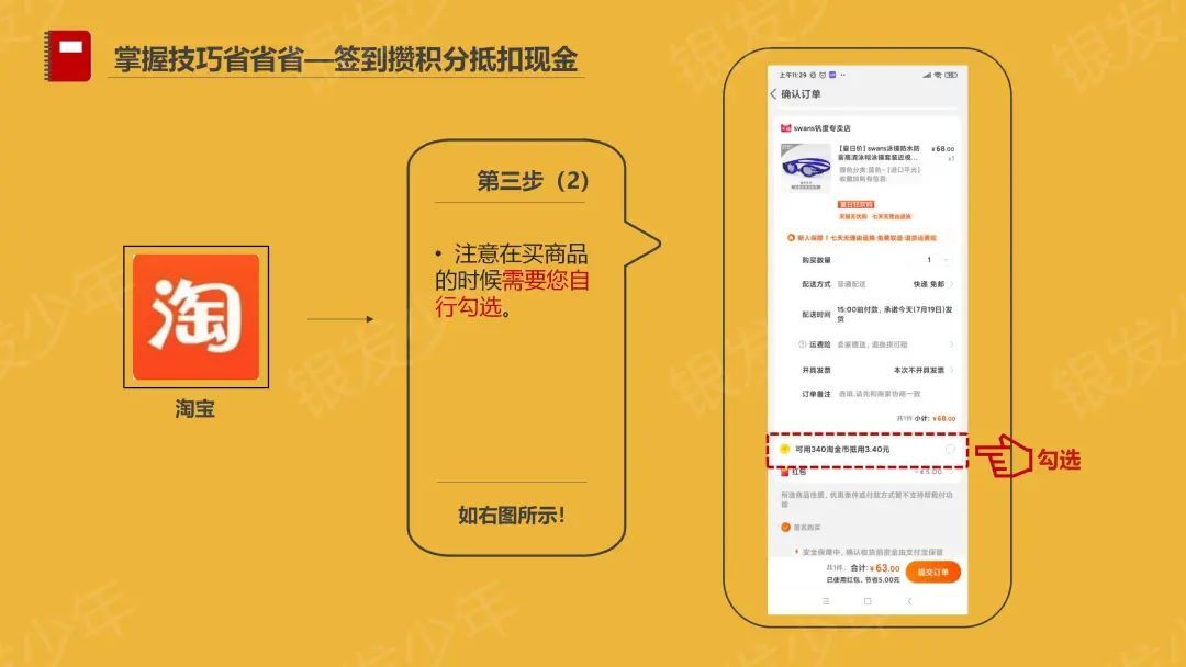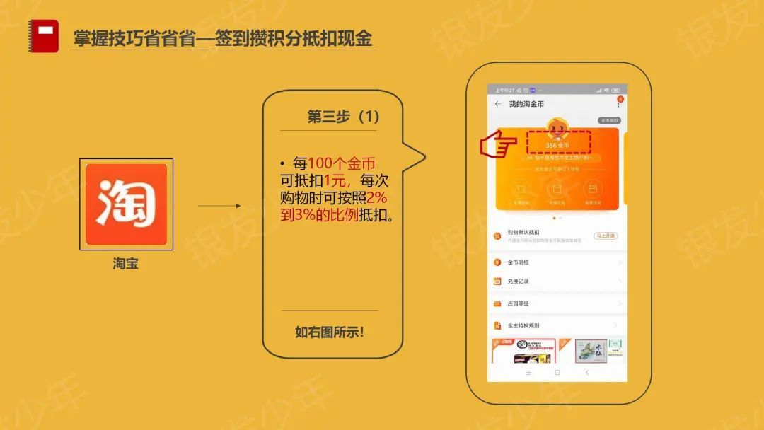 第三步:每100个金币可抵扣1元,每次购物时可按照2%到3%的比例抵扣。