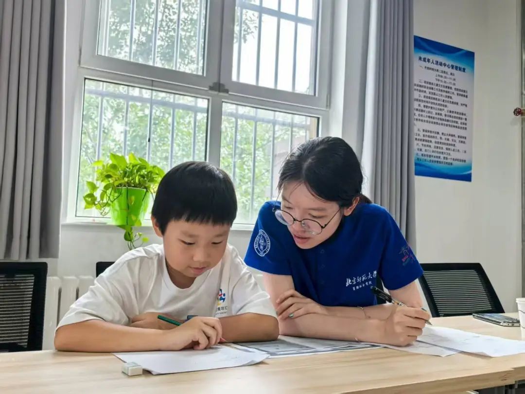 在“千人百村”校地共建活动中,5名北京师范大学学生扎根社区党群服务中心,针对中小学生暑期“辅导难”“成长空档”等问题,创新打造“三维助学”模式。志愿者们通过动态评估将学员划分为三个培养梯队,实施差异化赋能。基础巩固层聚焦学科薄弱点,采用“错题靶向攻克法”定制数学公式思维导图、英语语法动画课;能力提升层开设“举一反三训练营”,拓展习题量;思维创新层引导学生开展跨学科项目,产出不一样的创意成果。