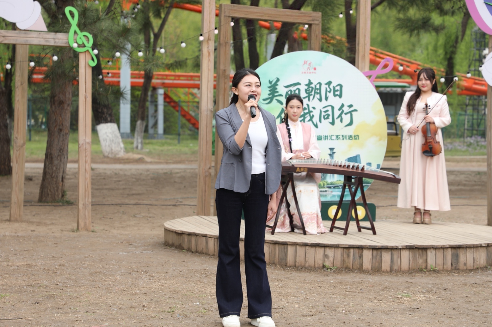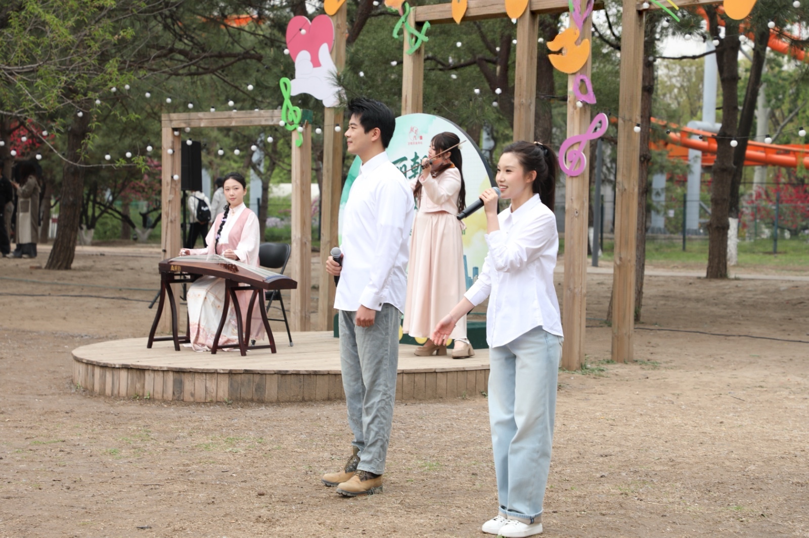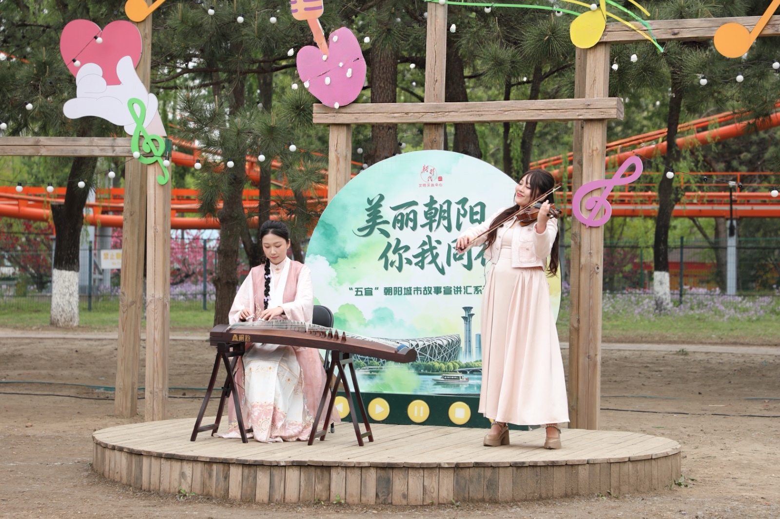 情景故事、器乐演奏等表演勾勒出朝阳春意艺术表达与公园实景共同赋能理论宣传