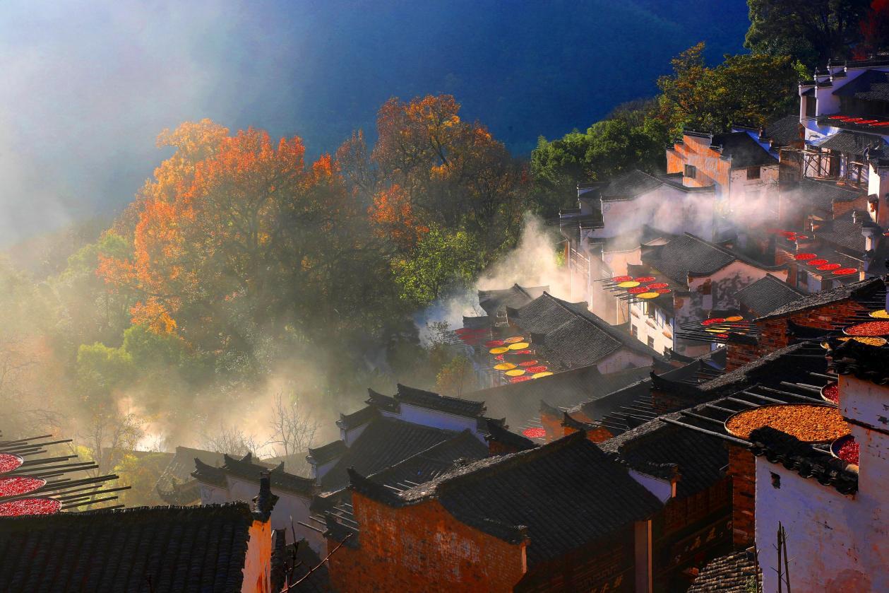 立秋后,江西上饶婺源县江湾镇篁岭村,村民晒出红辣椒、玉米、南瓜,五彩斑斓的农作物与特色民居共同勾勒出一幅山村“晒秋”图。今年婺源晒秋赏枫又将惊艳这一整个秋天!
