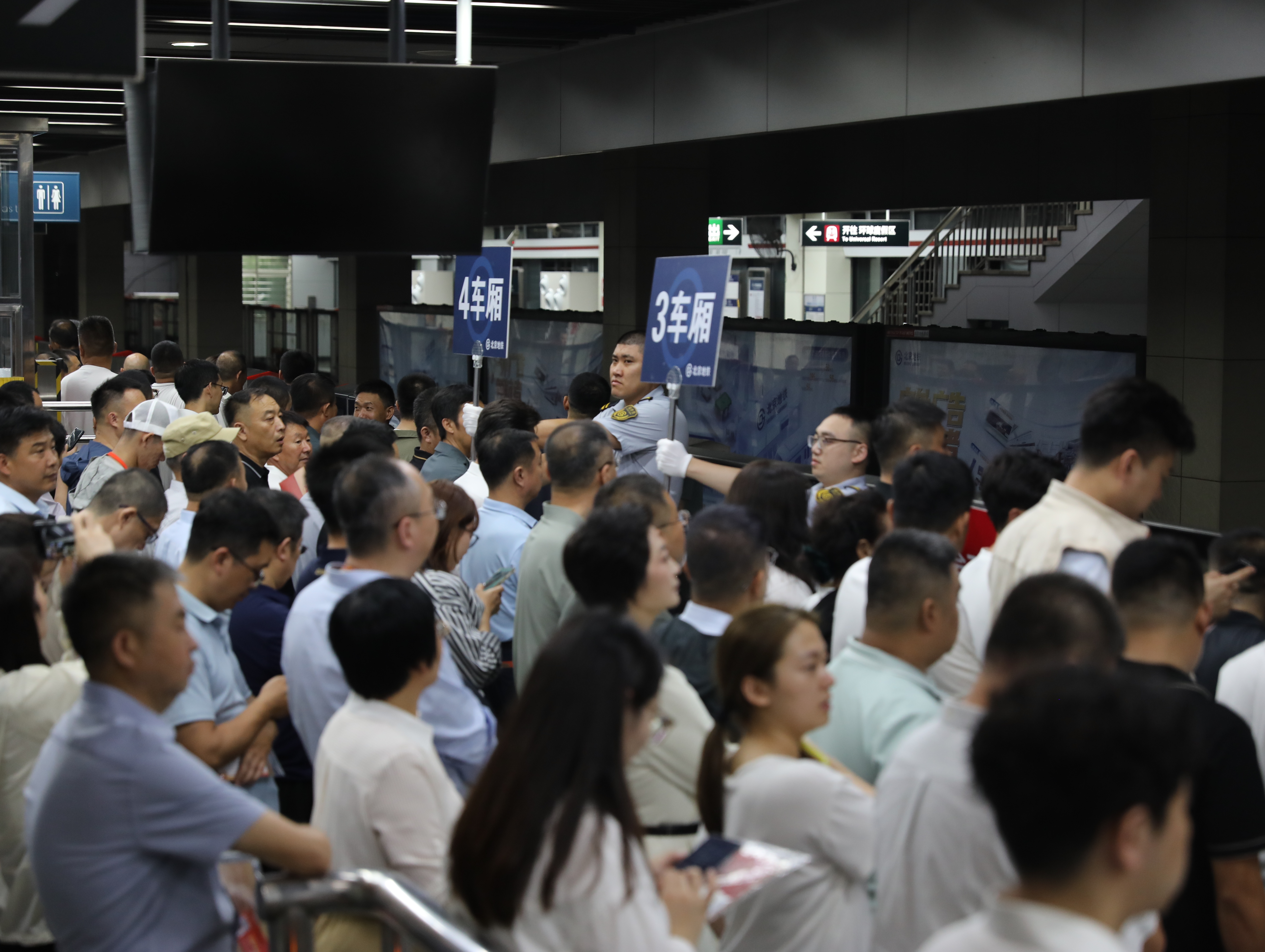 为了优化观礼嘉宾的出行路线,卢崝和同事们提前用脚步丈量车站,计算乘客从下车到站口每一处所需时间。“站台最远端到I口步行要7分钟,我们会在站台、扶梯口和通道各处进行引导,确保行进过程不停顿。”