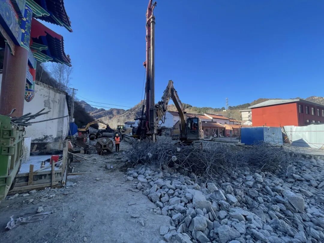在番字牌村,原有番字牌桥受洪水冲刷导致结构损毁。施工单位将旧桥拆除,使用更深的桩基,将重建一座稳稳“扎根”在河道内的新桥。