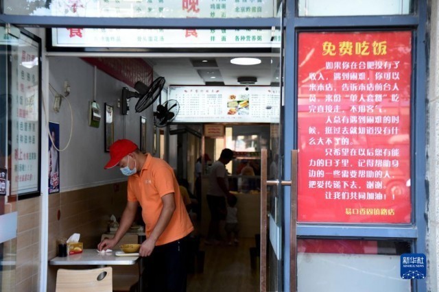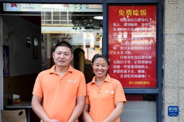 安徽的孙玉喜和王素侠夫妻在外打拼多年,2015年他们在合肥开了家早餐店。生意有起色了之后,他们常常回想起打拼时的不易,于是夫妻俩人就决定,万一遇到和当初自己一样手头拮据的客人,就帮助他们免费用餐,并且在店门口贴出暖心“暗号”:只要对前台说“来份单人套餐”,就可以不用付钱了。