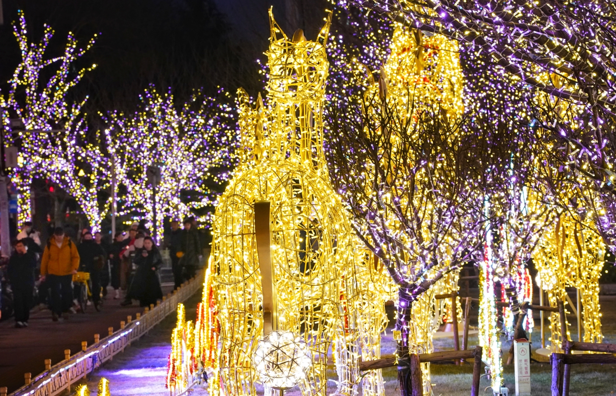 错落有致的光影装置覆盖CBD核心商圈,形成连片成景的夜间视觉盛宴。市民漫步其中,既能感受商务区的摩登璀璨,也能在马年主题光影中体悟新春民俗内涵,浓厚年味随着光影流转弥漫城区。