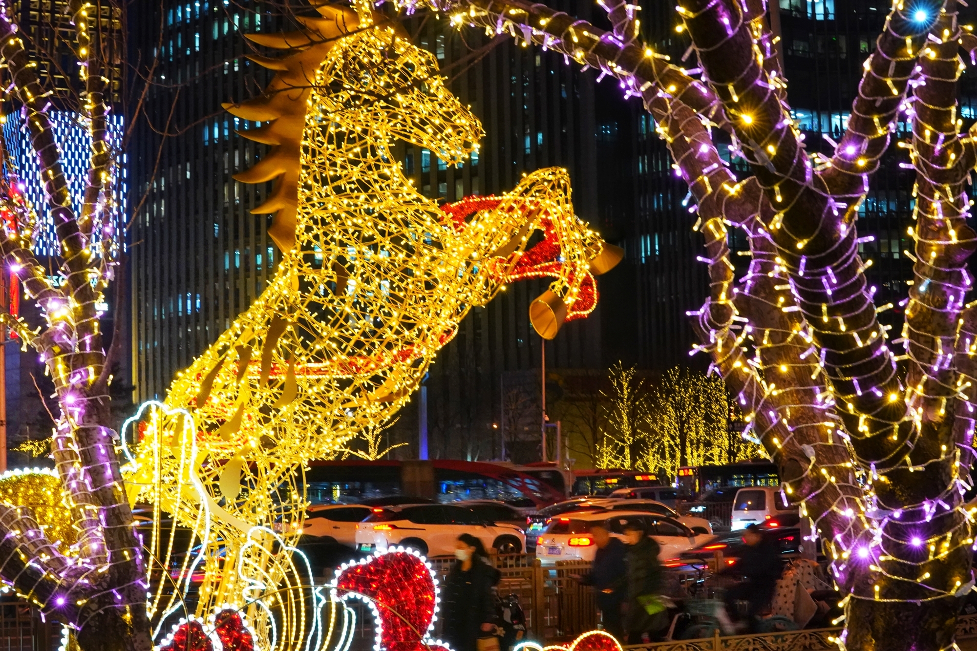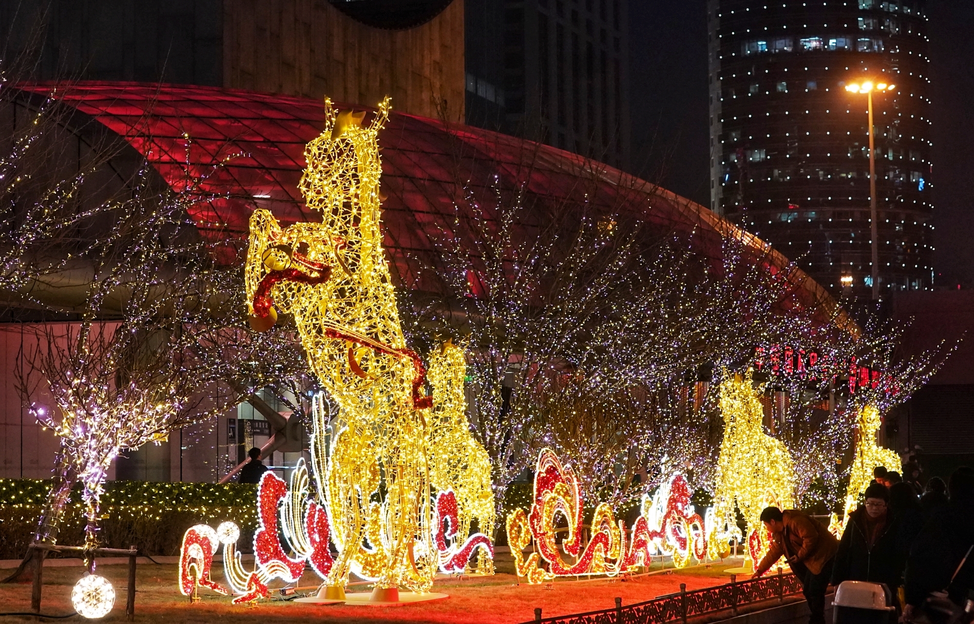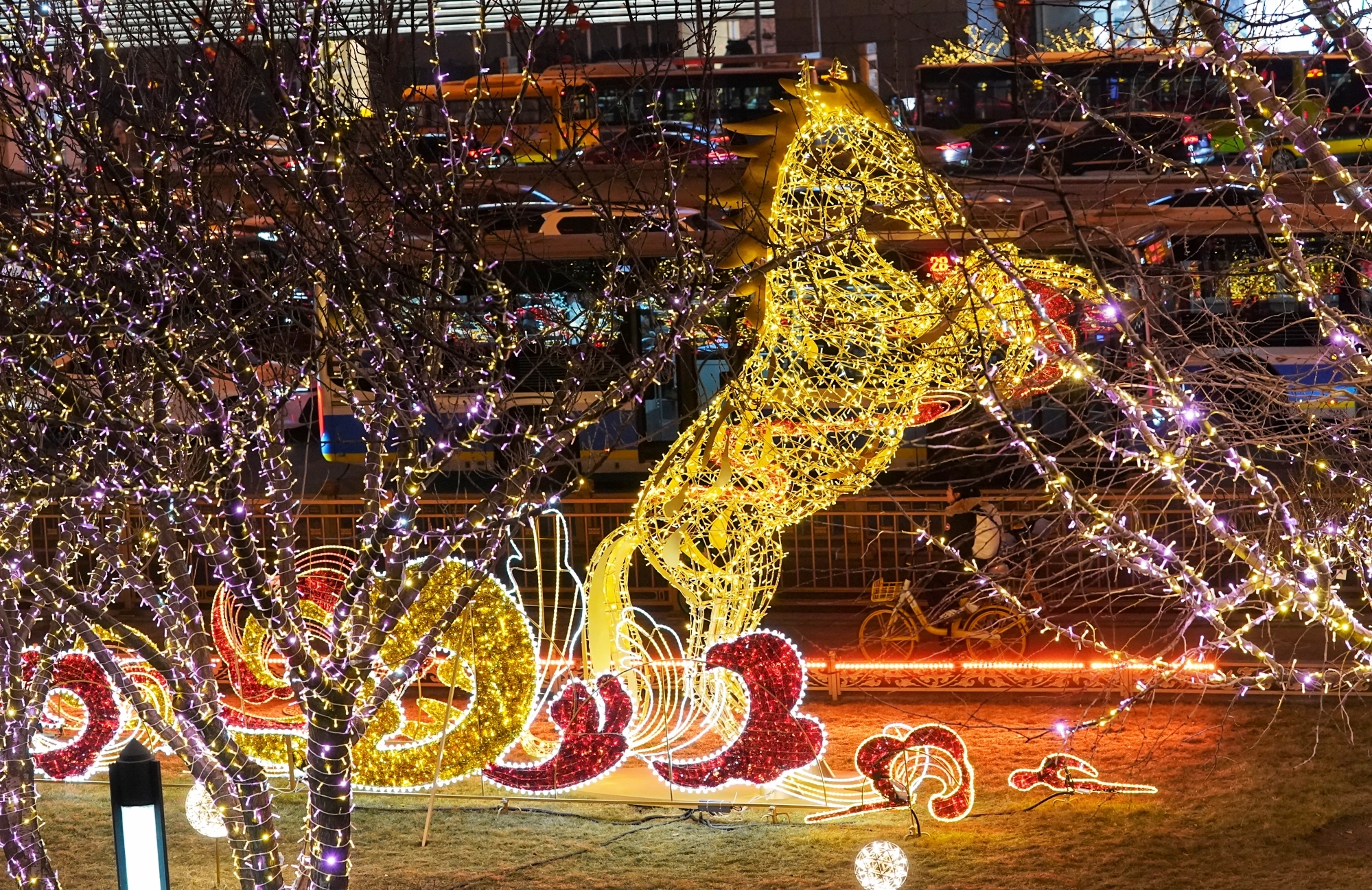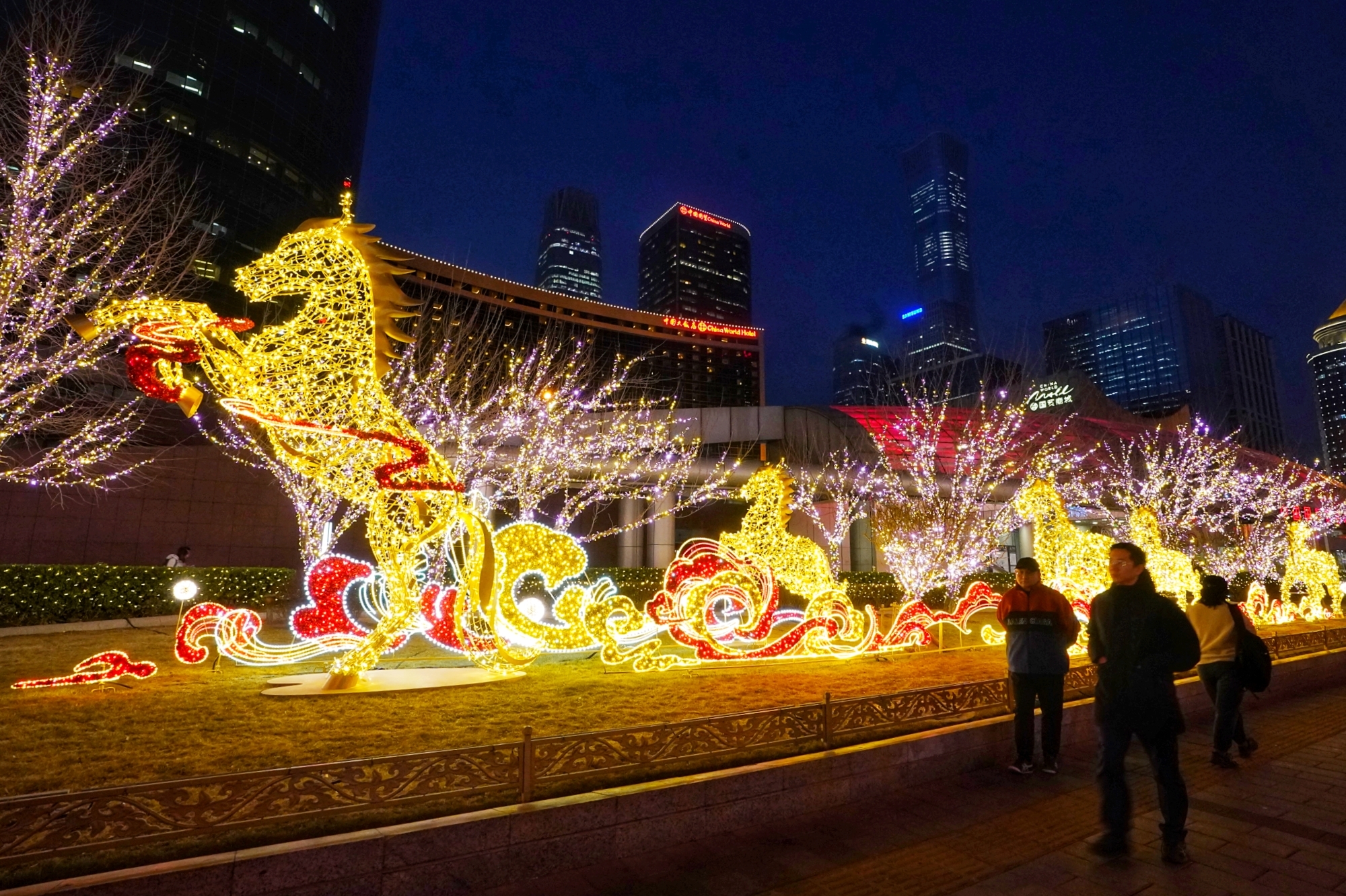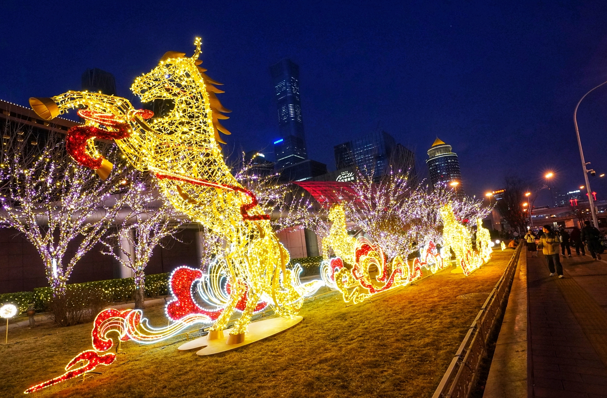 新春佳节将至,北京商务中心区(CBD)换上璀璨新装,以流光溢彩的光影设计融合丙午马年生肖文化元素,打造出兼具视觉冲击力与传统年味的城市新春图景,为市民与游客带来沉浸式节日体验。