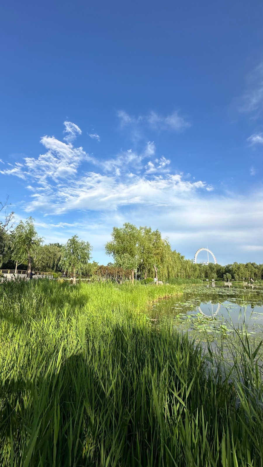 今天白天晴间多云,傍晚山区有雷阵雨,北风一级转南风三级,阵风五级左右,最高气温35℃;
