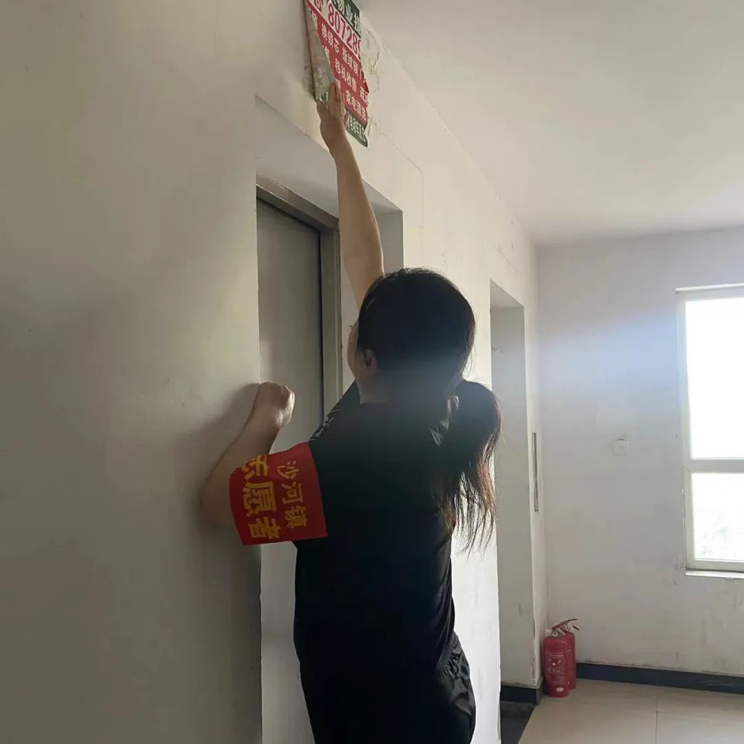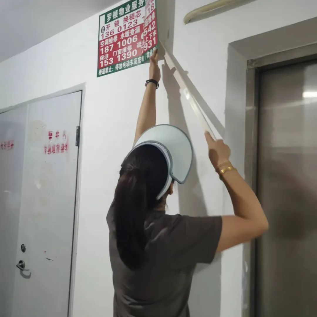 在微凉的秋风中,工作人员手持铲子、喷水壶及环保扫把等工具穿梭于辖区各楼群,对墙面、地面、公共设施等区域的顽固小广告进行细致入微的清理。同时,工作人员引导辖区居民从自身做起,自觉抵制乱贴小广告等影响环境的行为,共同营造干净整洁的居住环境。