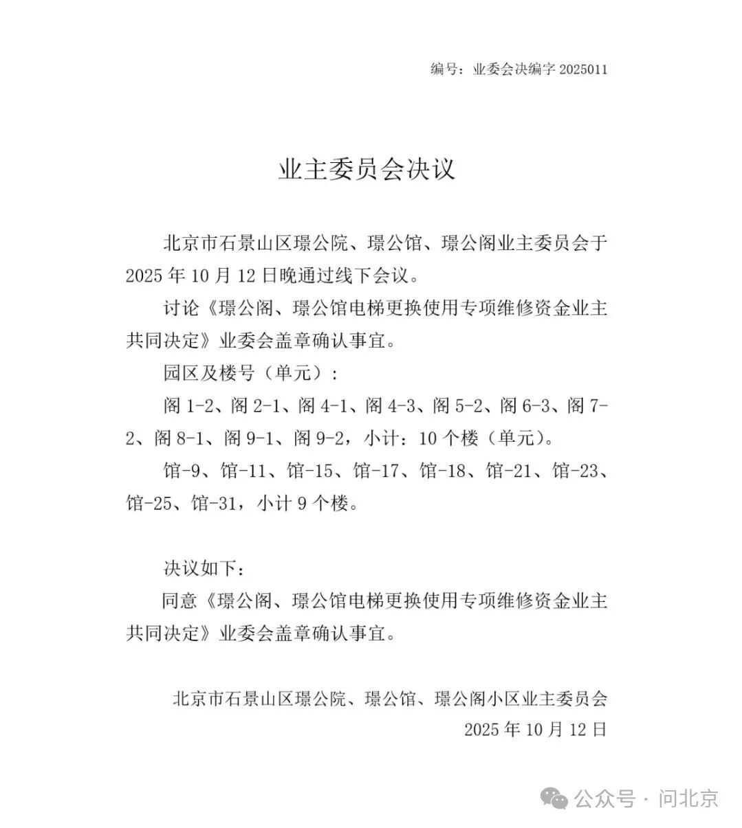 “问北京”记者从小区业委会10月12日发布的决议公告中了解到,小区37栋单元楼中,目前已有19栋同意换梯,部分已在施工中。目前小区里可见堆放着的换梯材料。