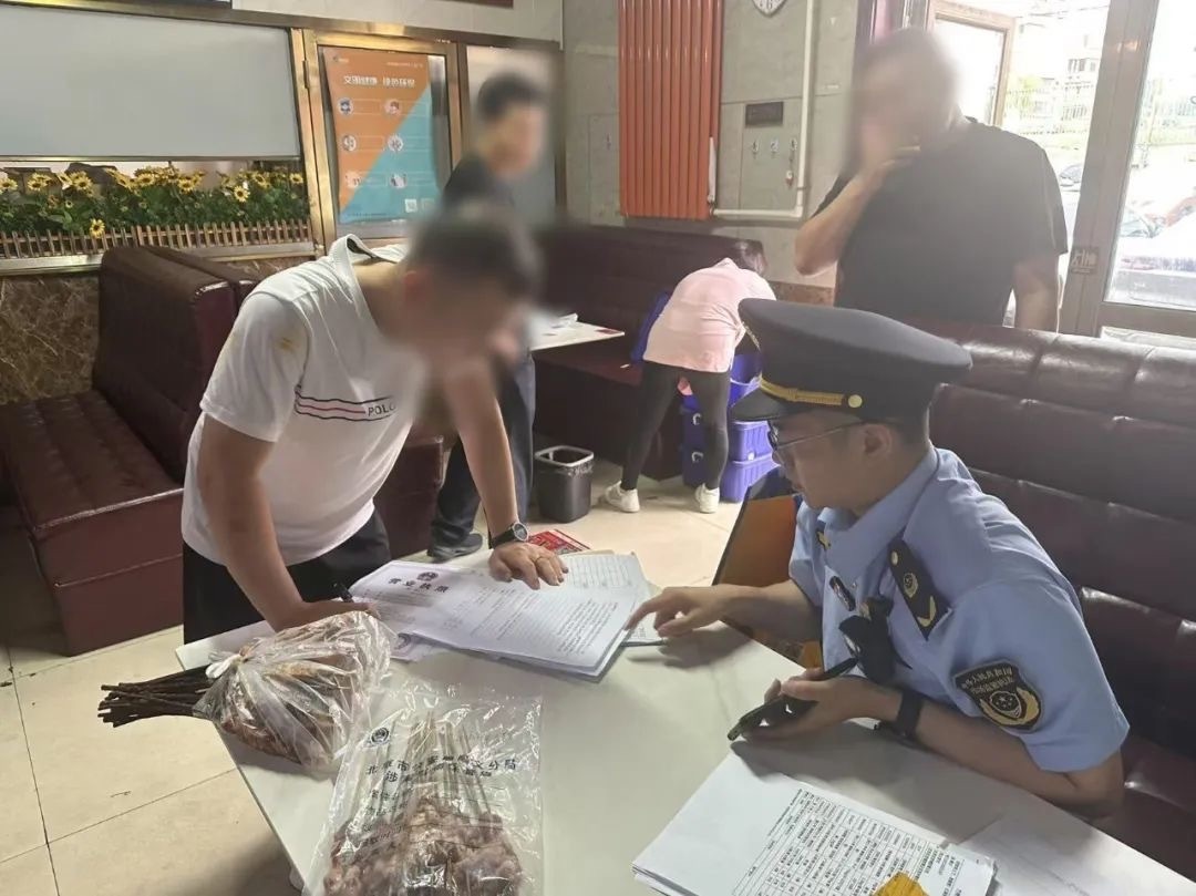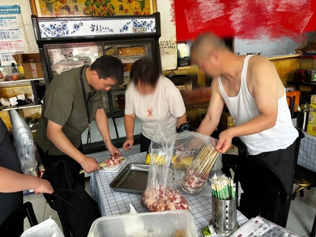 前期,顺义区市场监管执法大队接到6家外卖平台商户存在牛羊肉串掺杂掺假行为的线索后,联合区公安分局开展摸排研判,在锁定其中3家有重大嫌疑后启动行刑衔接程序。