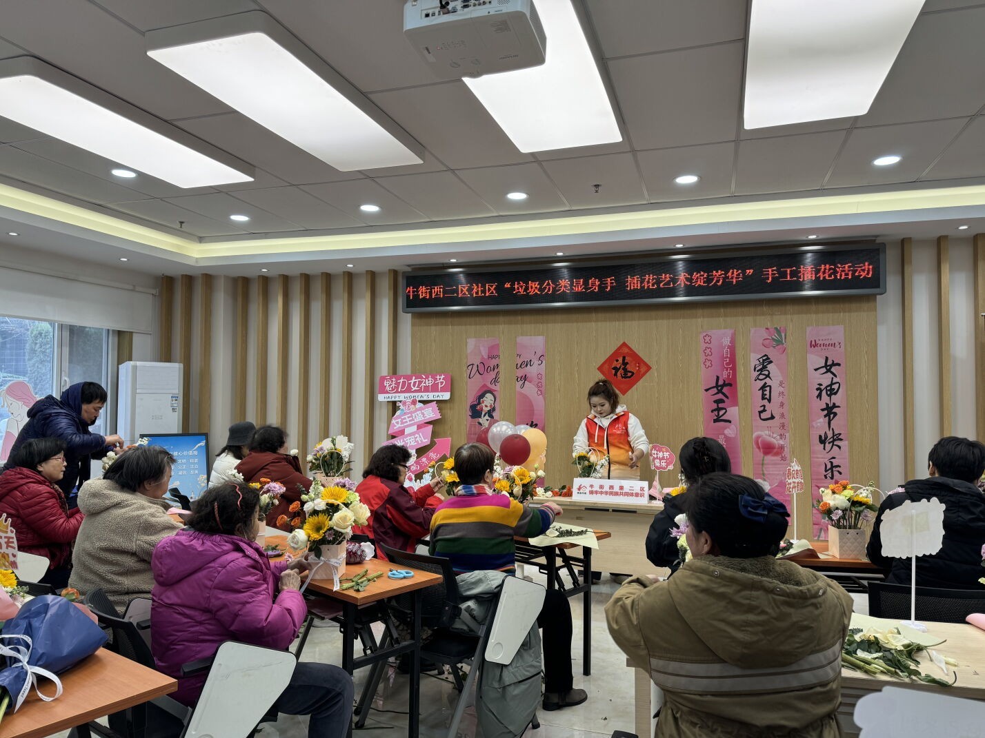 5月9日上午,在《北京市垃圾分类条例》实施五周年之际,牛街西里二区社区邀请社区老年妇女在社区会议室中心开展“垃圾分类显身手 插花艺术绽芳华”老年人插花DIY及垃圾分类宣传活动。