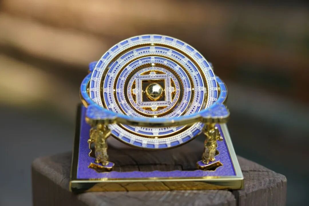 在表面处理上,采用多层电镀工艺,使金属质感细腻光亮,同时辅以高精度打印上色,还原藻井彩绘的华美纹饰。