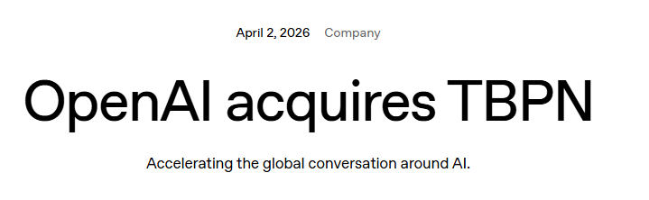 当地时间4月2日,美国人工智能公司OpenAI宣布,已收购新兴科技访谈节目TBPN。