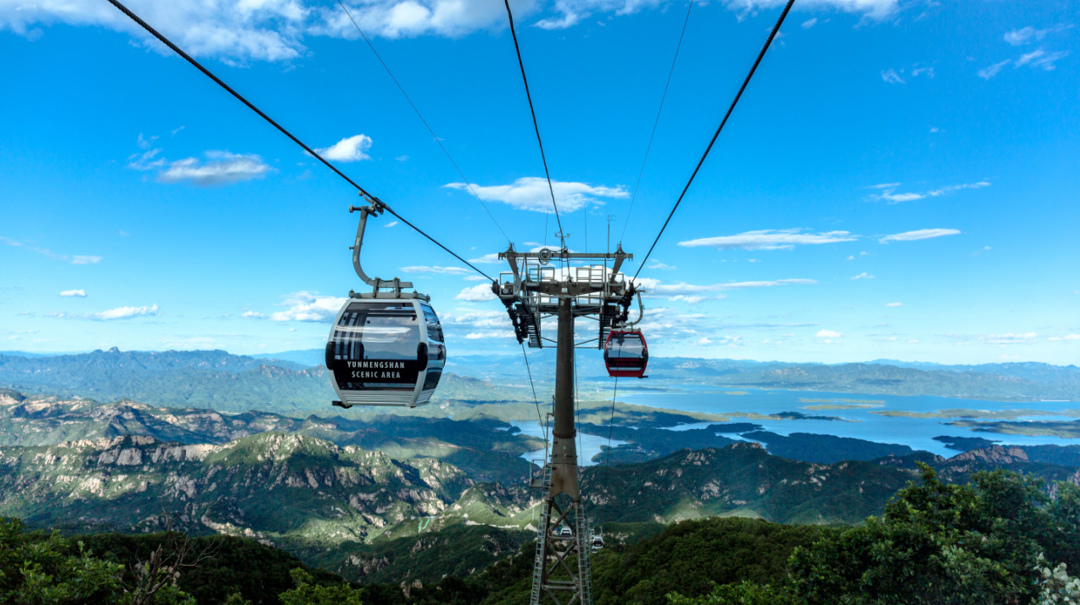 在密云水库周边分布着多处“看海”打卡地,其中日光山谷、云蒙山、云峰山、邑仕庄园观景点位特色鲜明,为市民游客提供多角度、多元化的“看海”体验。日光山谷位于水库南线穆家峪镇,主打“松弛自在的休闲之海”。其推出的180°观景平台已成为新晋网红打卡地。游客可在此体验山地滑车、UTV越野,或在山顶围炉煮茶、品咖啡观落日,尽享悠然时光。云蒙山坐落于水库西线石城镇,素有“北方小黄山”美誉,是“运动热血的活力之海”。这里既可以徒步登高,在520和1314等多个浪漫网红点打卡留念,还能乘坐缆车,将山间水库、茂密森林和奇山怪石等特色风光尽收眼底。云峰山位于水库北岸不老屯镇,这里被誉为“长寿之乡”,依托“不老”文化,云峰山打造“疗愈身心的康养之海”。游客可漫步薰衣草花田、乘坐小火车、入住童话树屋,推窗见山、躺卧看“海”,享受身心双重放松。邑仕庄园地处水库东岸太师屯镇,融合葡萄酒文化与欧式城堡风情,呈现“温馨诗意的浪漫之海”。游客可登城堡远眺水库,体验“在红酒杯中看海”的独特意境,感受田园诗意与岁月静好。