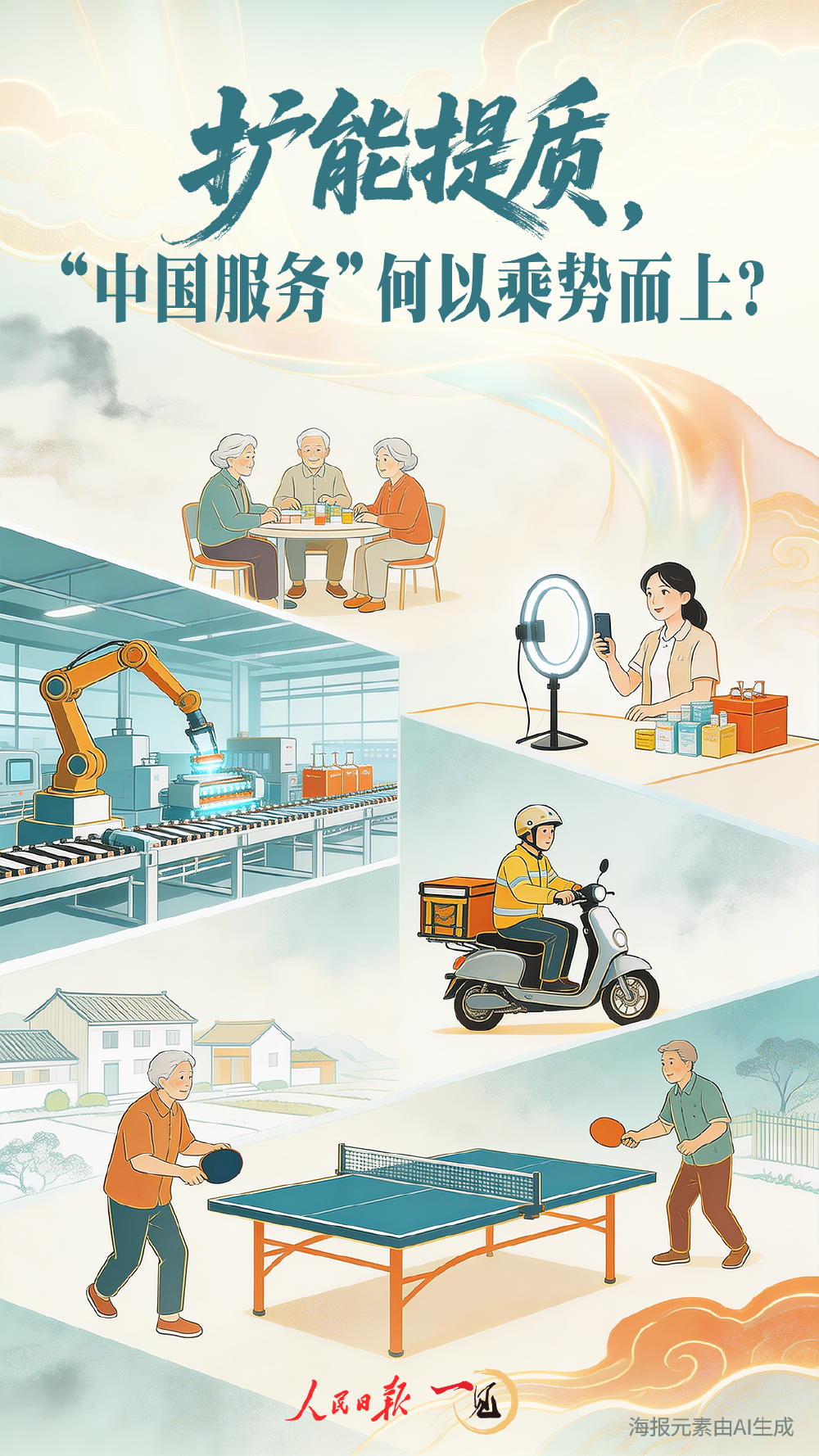 还有新职业。网络主播,外卖小哥,网约车司机,数据分析师……伴随服务业兴起,融入群众日常生活。2025年,我国服务业就业人员占比达到50%左右,吸纳就业的主渠道作用更加突出。