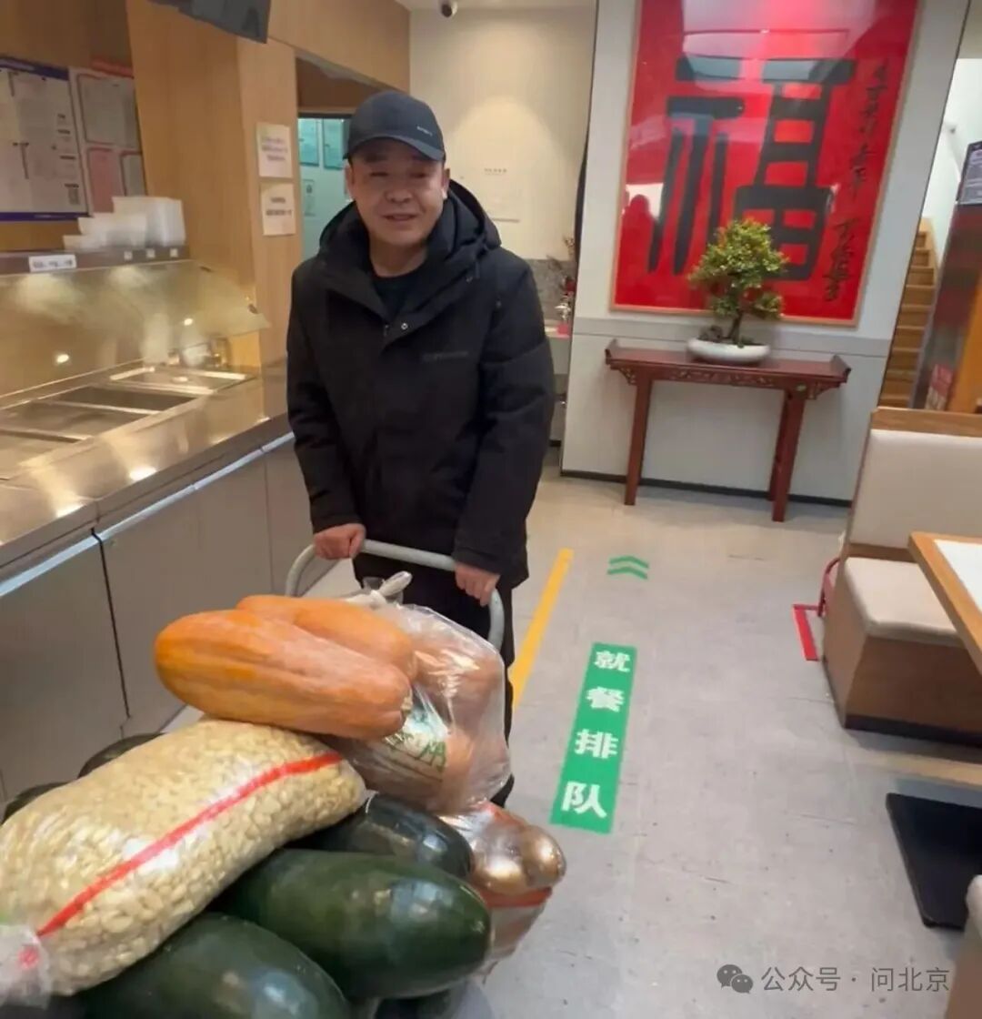 “问北京”记者刚到这家胡同里的食堂,就撞见一个忙碌的身影——黄永周店长弓着腰,拉着一辆装满蔬菜的平板车,走上门口的坡道。