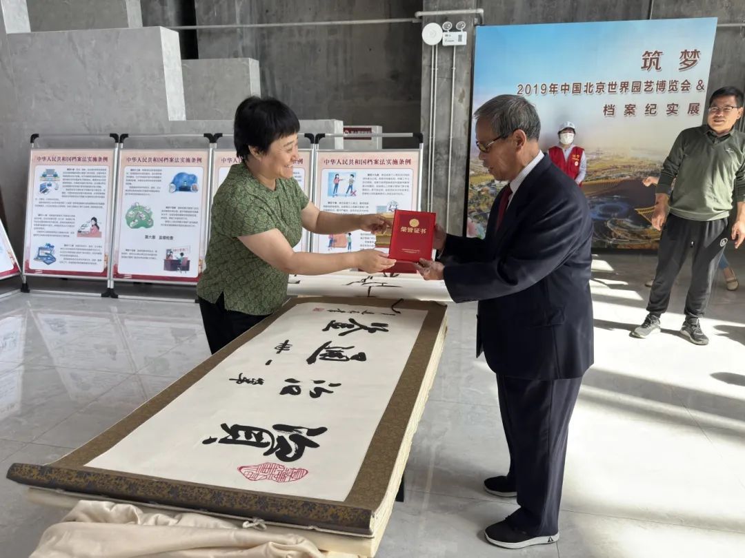 活动当天,除了文化档案展出,特色活动同样精彩纷呈。85岁高龄的北京市老年书画研究会会员、延庆区书法协会会员闫尚立老先生,将其历时8年临摹的书法作品《资治通鉴》、50米长的红色长卷以及30余幅书画作品捐赠给档案史志馆,为馆藏增添了珍贵的地方文化资源。