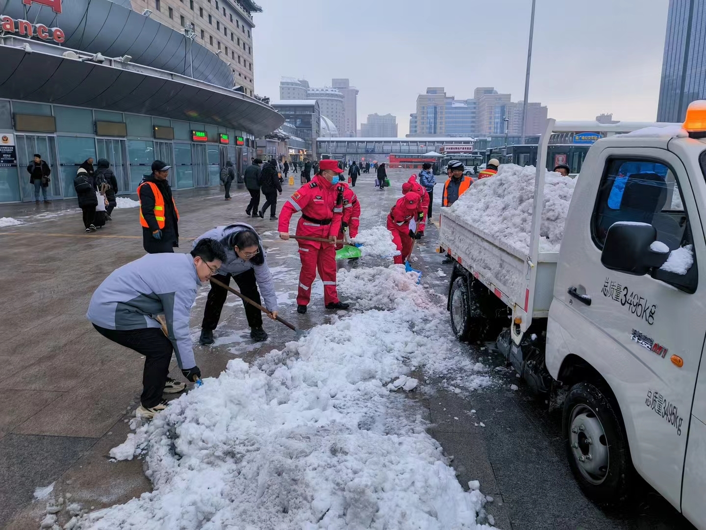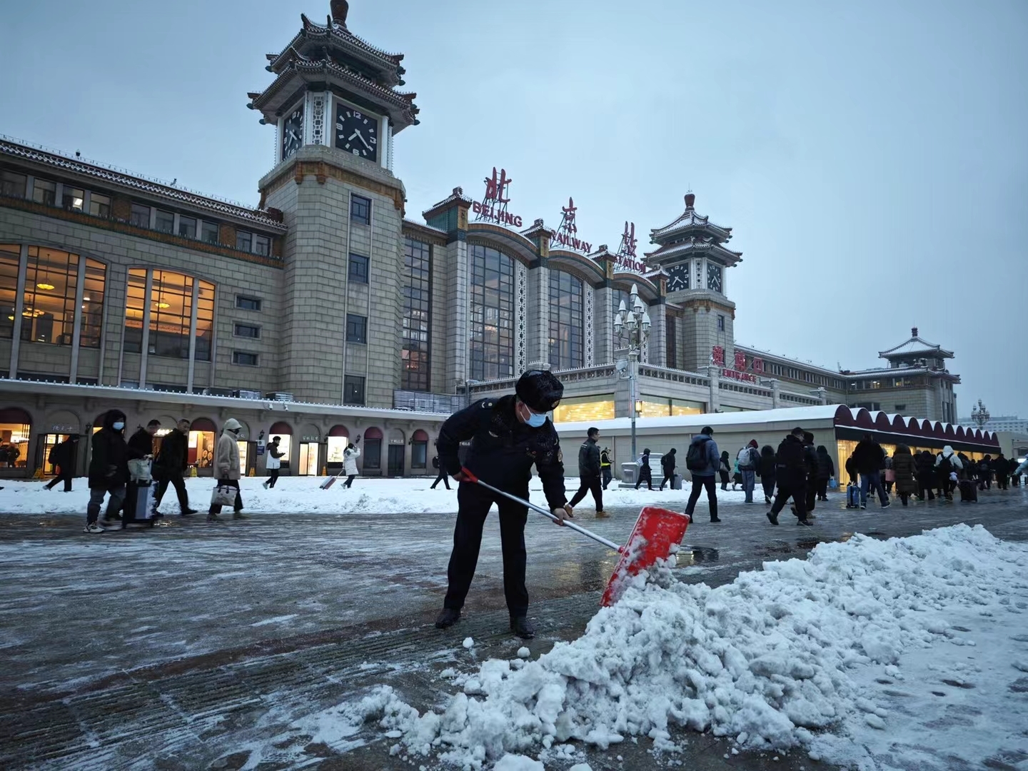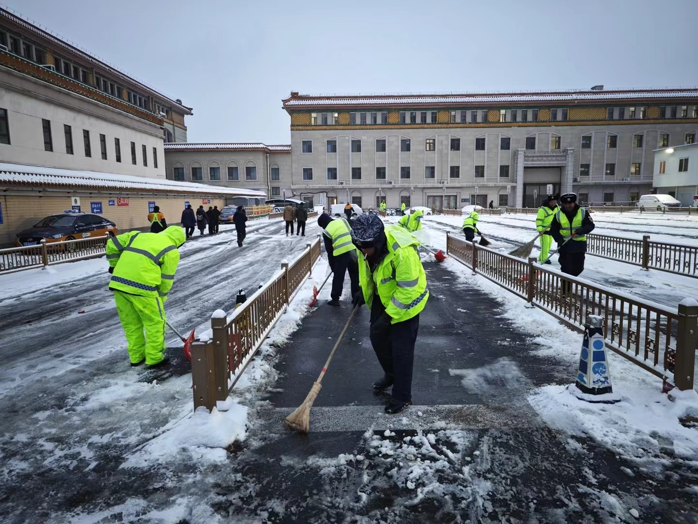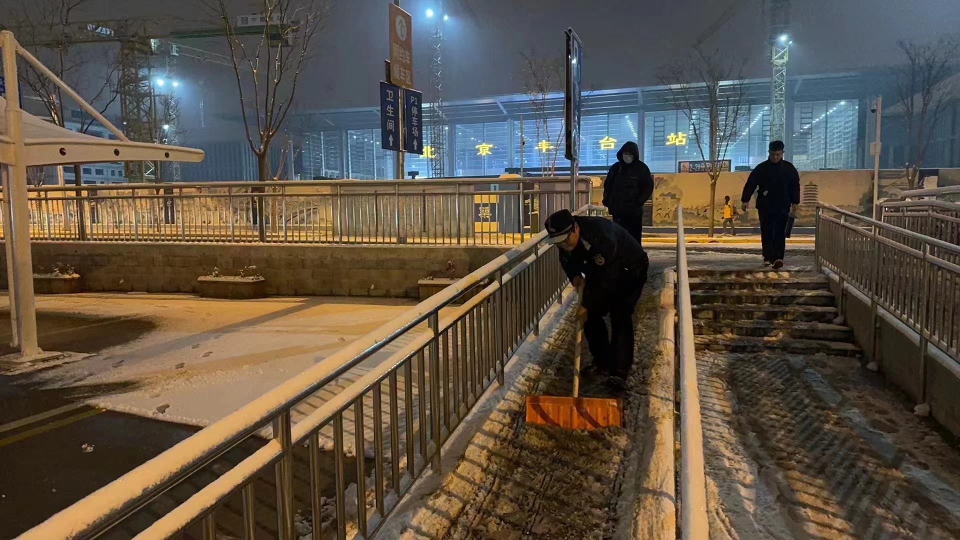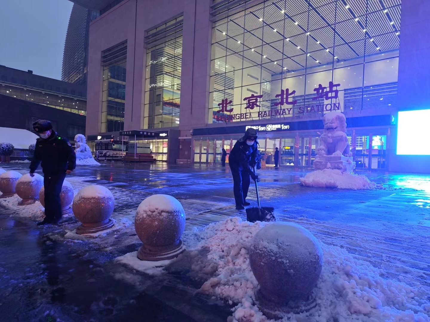 闻雪而动!北京市各大火车站地区凌晨启动扫雪铲冰工作