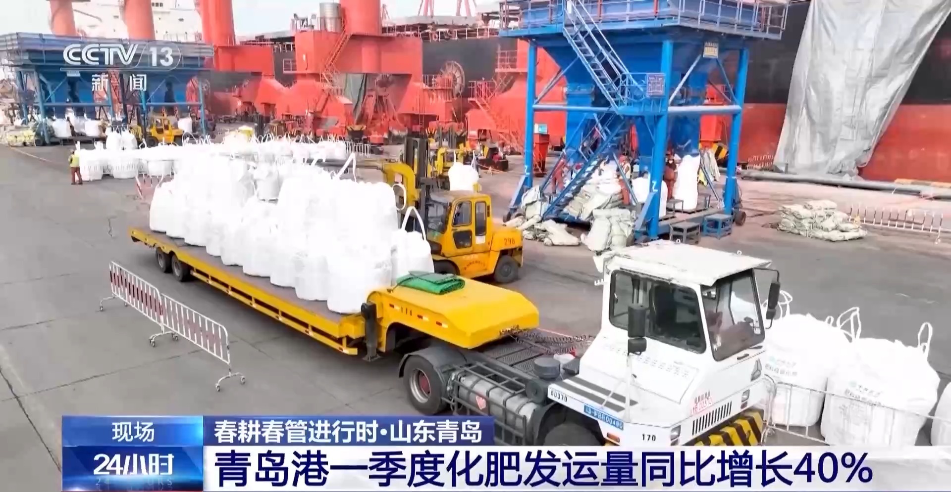 4月5日,在青岛港大港港区,一艘满载5.8万吨进口化肥的货轮正在进行接卸作业。这是青岛港今年迎来的第3艘化肥进口运输货轮。随后,这些化肥将通过码头“三路疏运”到山东、河北、河南、东北等粮食主产区,精准对接农时需求、增强农资供给。