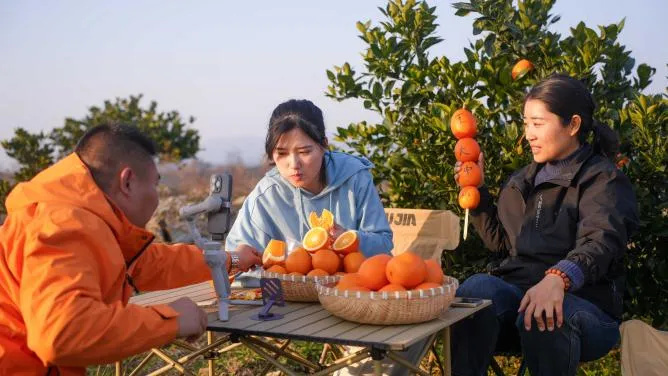 今年12月,湖北十堰丹江口市凉水河镇的柑桔园里,一场特别的户外直播正在举行。主播骆静怡,曾是一名在北京奔波的外卖骑手,如今她站在南水北调中线工程的水源地,向网友推介当地的武当蜜桔。