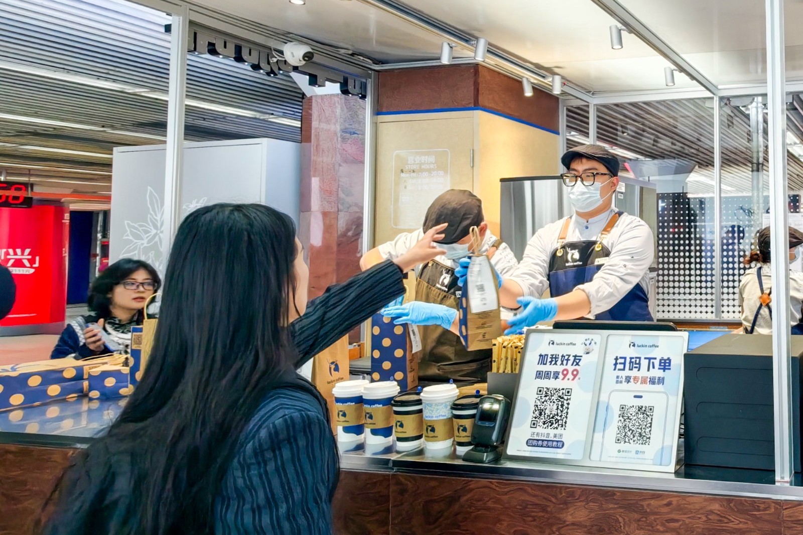 为进一步提升乘客“出行即服务”体验,助力本市“一刻钟便民生活圈”建设,北京地铁公司积极创新探索,对 1 号线八通线国贸站的原有服务空间进行了创新升级改造,携手瑞幸咖啡打造的地铁站内首家咖啡店,于今日正式投入运营。