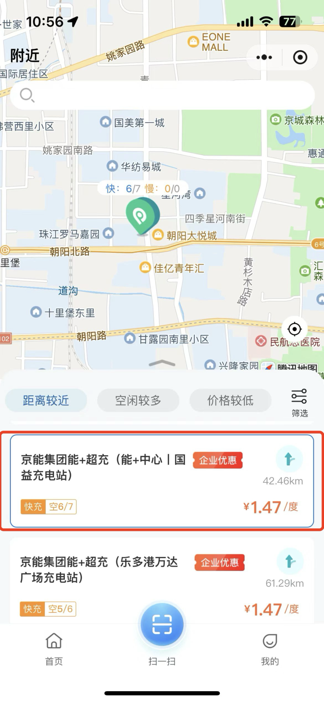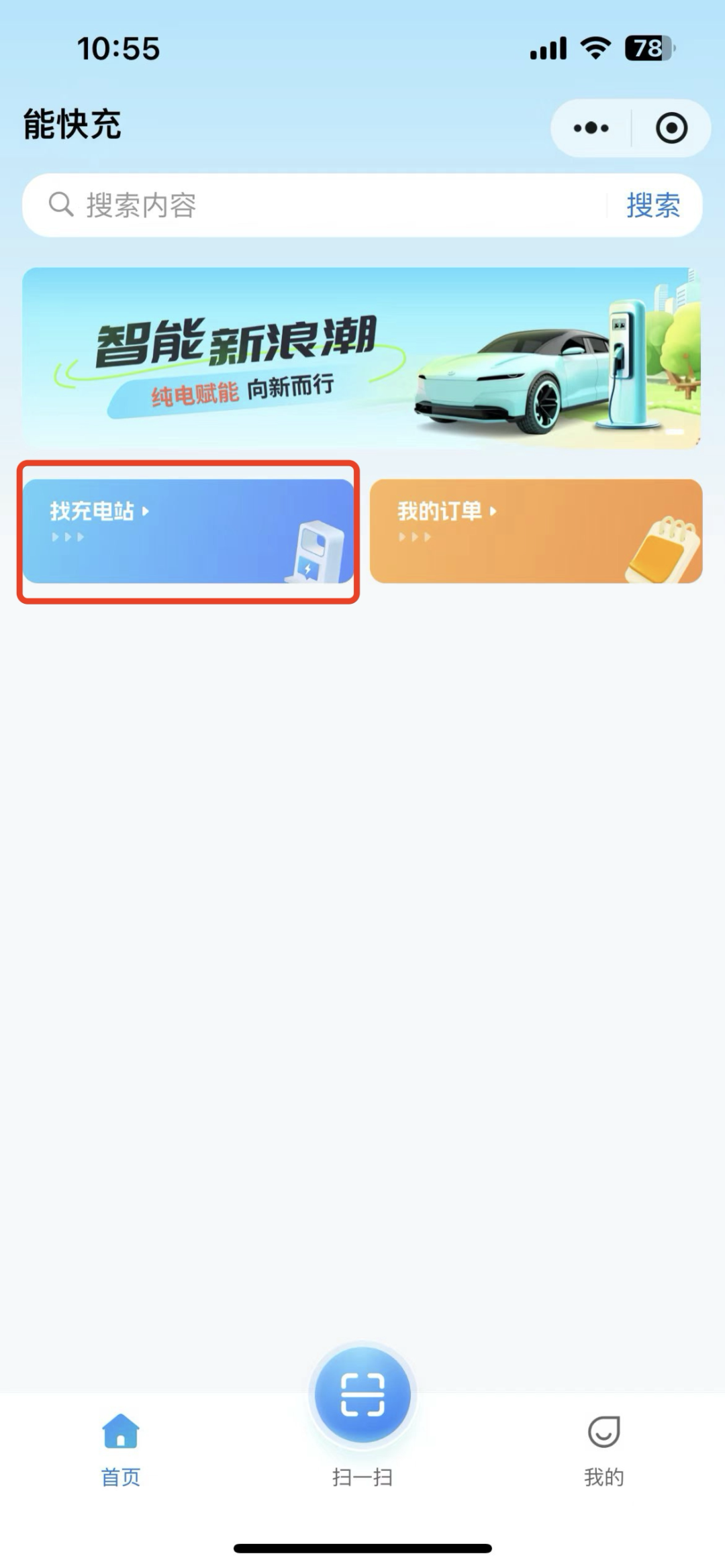 你可以搜索“能快充”微信小程序,从首页进入【找充电站】板块,查询附近超充站点的位置、充电价格、电桩类型、空闲状态等信息,体验扫码充电、一键导航等综合性一站式超级快充服务。